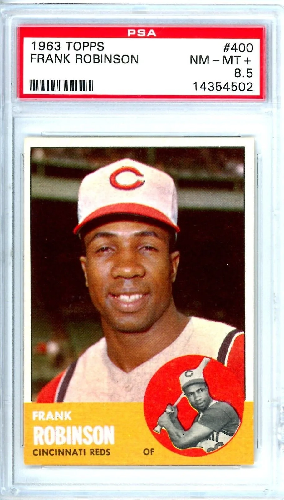 Shop › 1963 Topps Frank Robinson #400 PSA 8.5 Reds 12675 Image 1 of 1 1963 Topps Frank Robinson #400 PSA 8.5 Reds 12675 $776.00 Thousands of high grade PSA cards available New cards added weekly Always check KRISKEPPLERSPORTSCARDS Add To Cart Added! Thousands of high grade PSA cards available New cards added weekly Always check KRISKEPPLERSPORTSCARDS
