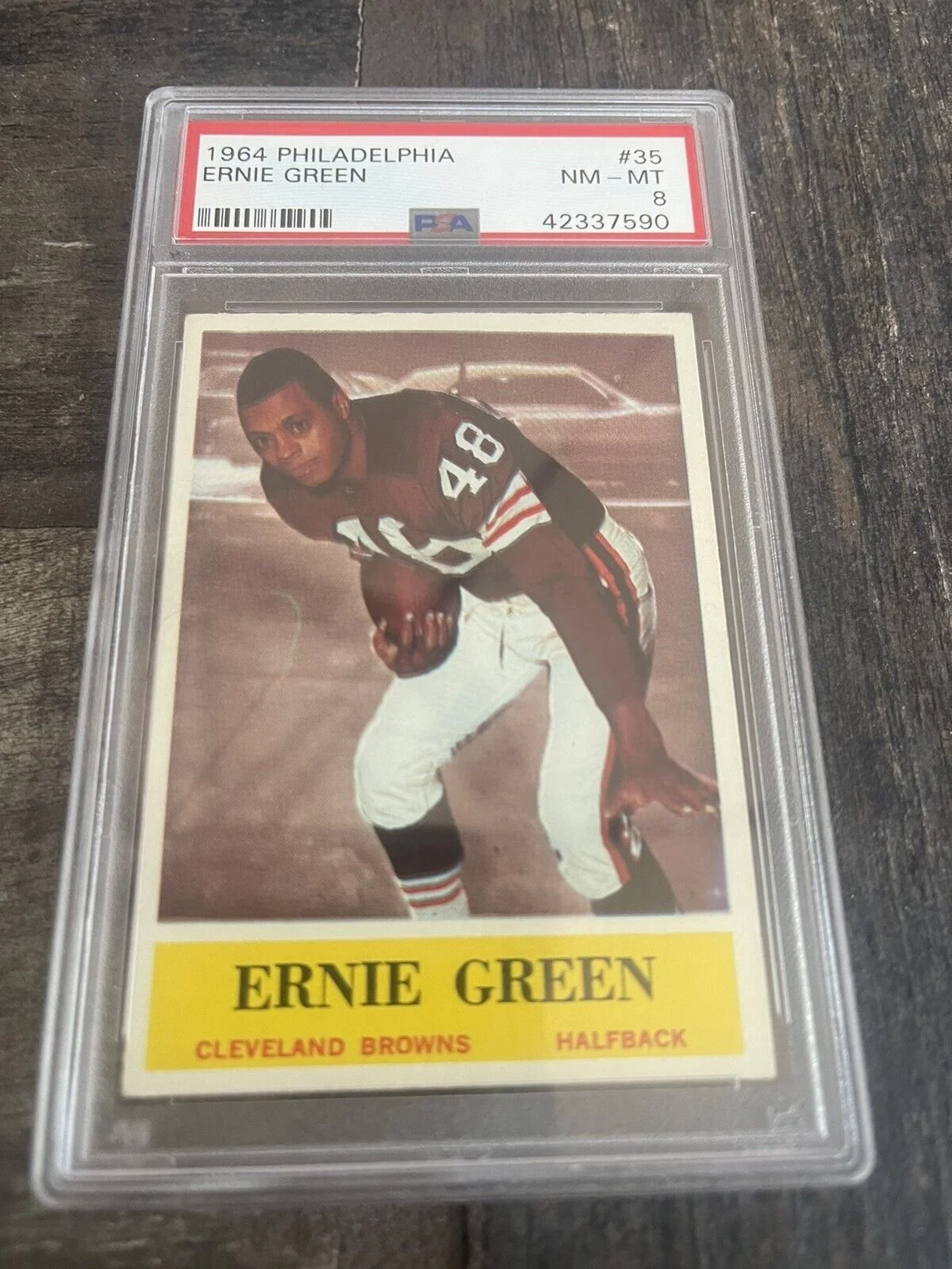 Shop › 1964 Philadelphia Ernie Green #35 PSA 8 Browns 12347 Image 1 of 1 1964 Philadelphia Ernie Green #35 PSA 8 Browns 12347 $294.00 1964 Philadelphia Ernie Green #35 PSA 8 Browns 12347. Condition is Graded. Shipped with USPS Ground Advantage. Add To Cart Added! 1964 Philadelphia Ernie Green #35 PSA 8 Browns 12347. Condition is Graded. Shipped with USPS Ground Advantage.