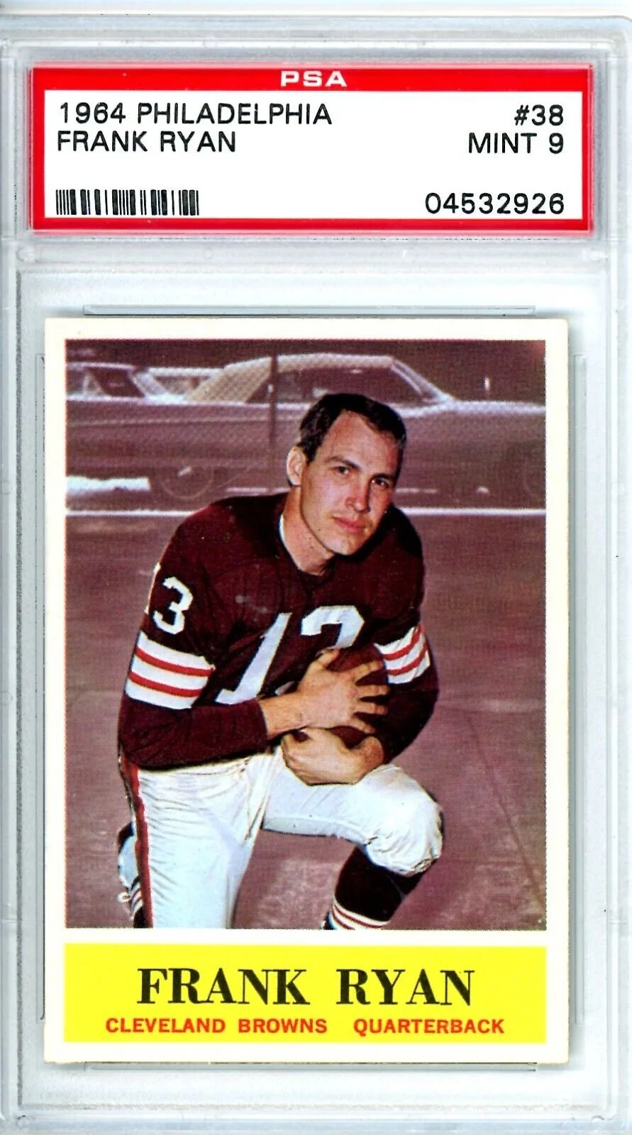 Shop › 1964 Philadelphia Frank Ryan #38 Browns PSA 9 12414 Image 1 of 1 1964 Philadelphia Frank Ryan #38 Browns PSA 9 12414 $122.50 Thousands of high grade PSA cards available New cards added weekly Always check KRISKEPPLERSPORTSCARDS Add To Cart Added! Thousands of high grade PSA cards available New cards added weekly Always check KRISKEPPLERSPORTSCARDS