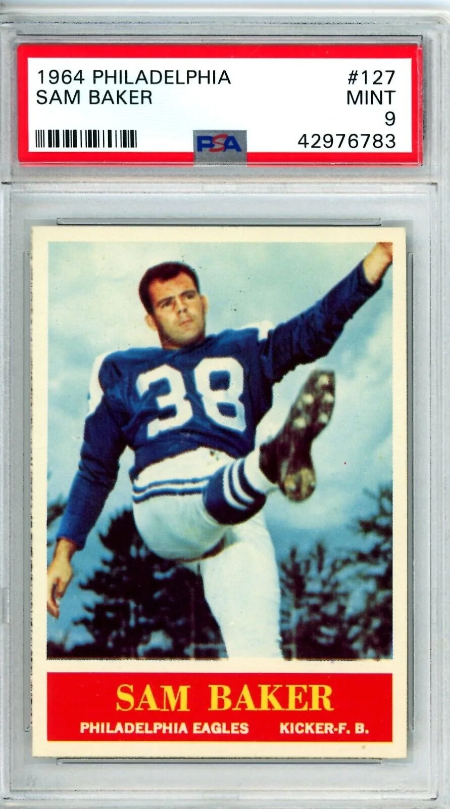 Shop › 1964 Philadelphia Sam Baker #127 Eagles PSA 9 12399 Image 1 of 1 1964 Philadelphia Sam Baker #127 Eagles PSA 9 12399 $72.00 Thousands of high grade PSA cards available New cards added weekly Always check KRISKEPPLERSPORTSCARDS Add To Cart Added! Thousands of high grade PSA cards available New cards added weekly Always check KRISKEPPLERSPORTSCARDS