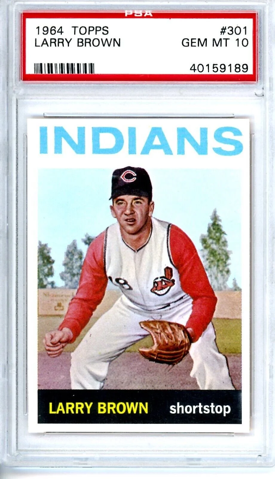 Shop › 1964 Topps Larry Brown #301 Indians PSA 10 10837 Image 1 of 1 1964 Topps Larry Brown #301 Indians PSA 10 10837 $727.65 Thousands of high grade PSA cards available New cards added weekly Always check KRISKEPPLERSPORTSCARDS Add To Cart Added! Thousands of high grade PSA cards available New cards added weekly Always check KRISKEPPLERSPORTSCARDS