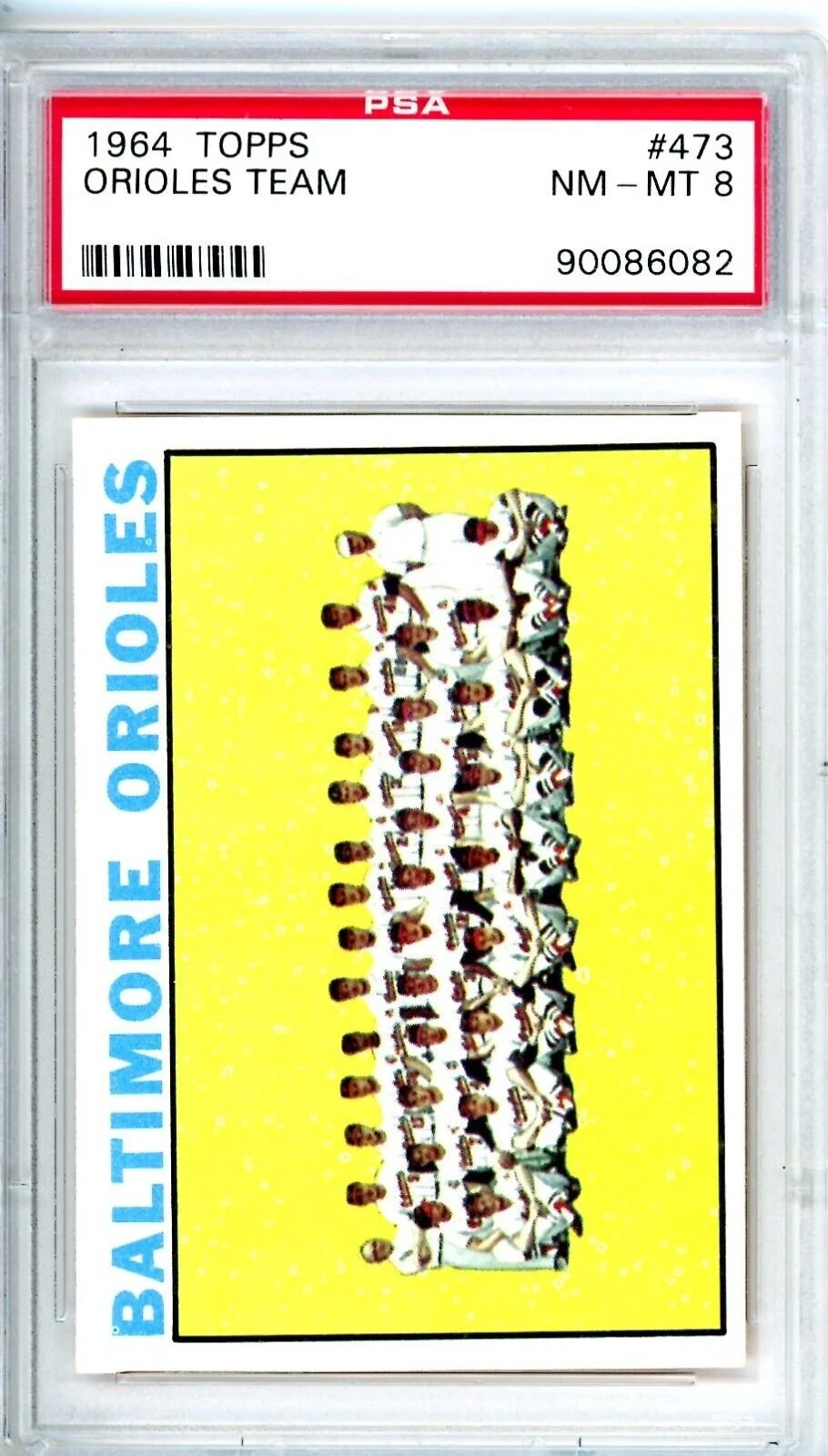 Shop › 1964 Topps Orioles Team #473 PSA 8 Orioles 12666 Image 1 of 1 1964 Topps Orioles Team #473 PSA 8 Orioles 12666 $873.00 Thousands of high grade PSA cards available New cards added weekly Always check KRISKEPPLERSPORTSCARDS Add To Cart Added! Thousands of high grade PSA cards available New cards added weekly Always check KRISKEPPLERSPORTSCARDS