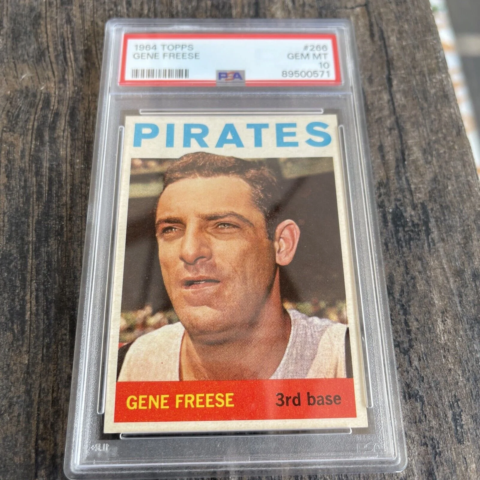 Shop › 1964 Topps PSA 10 Gene Freeze Pirates #266 Image 1 of 1 1964 Topps PSA 10 Gene Freeze Pirates #266 $1,400.00 1964 Topps PSA 10 Gene Freeze Pirates #266. Condition is Graded. Shipped with USPS Ground Advantage. Add To Cart Added! 1964 Topps PSA 10 Gene Freeze Pirates #266. Condition is Graded. Shipped with USPS Ground Advantage.