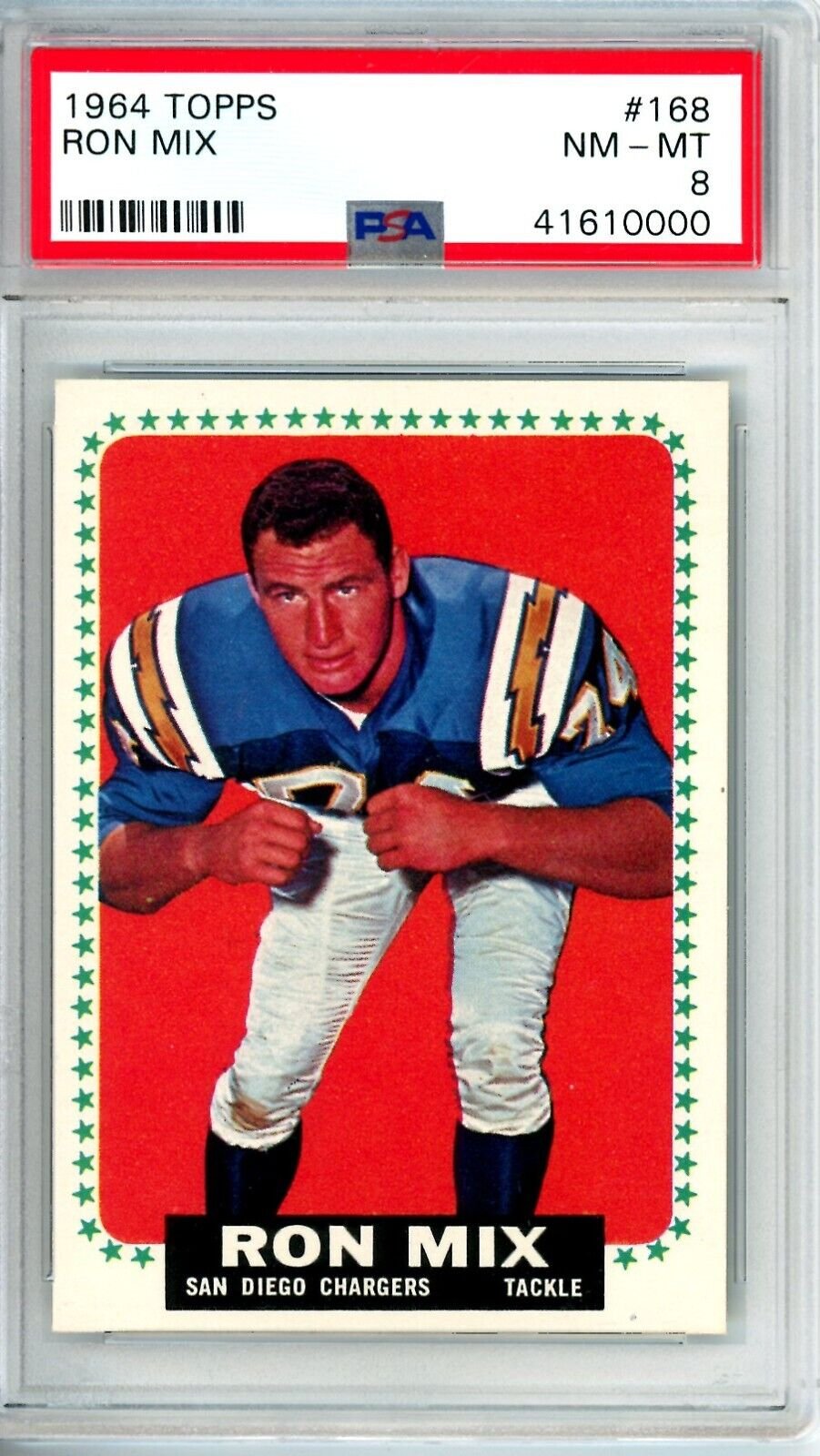 Shop › 1964 Topps Ron Mix #168 PSA 8 Chargers 12084 Image 1 of 1 1964 Topps Ron Mix #168 PSA 8 Chargers 12084 $147.00 Thousands of high grade PSA cards available New cards added weekly Always check KRISKEPPLERSPORTSCARDS Add To Cart Added! Thousands of high grade PSA cards available New cards added weekly Always check KRISKEPPLERSPORTSCARDS
