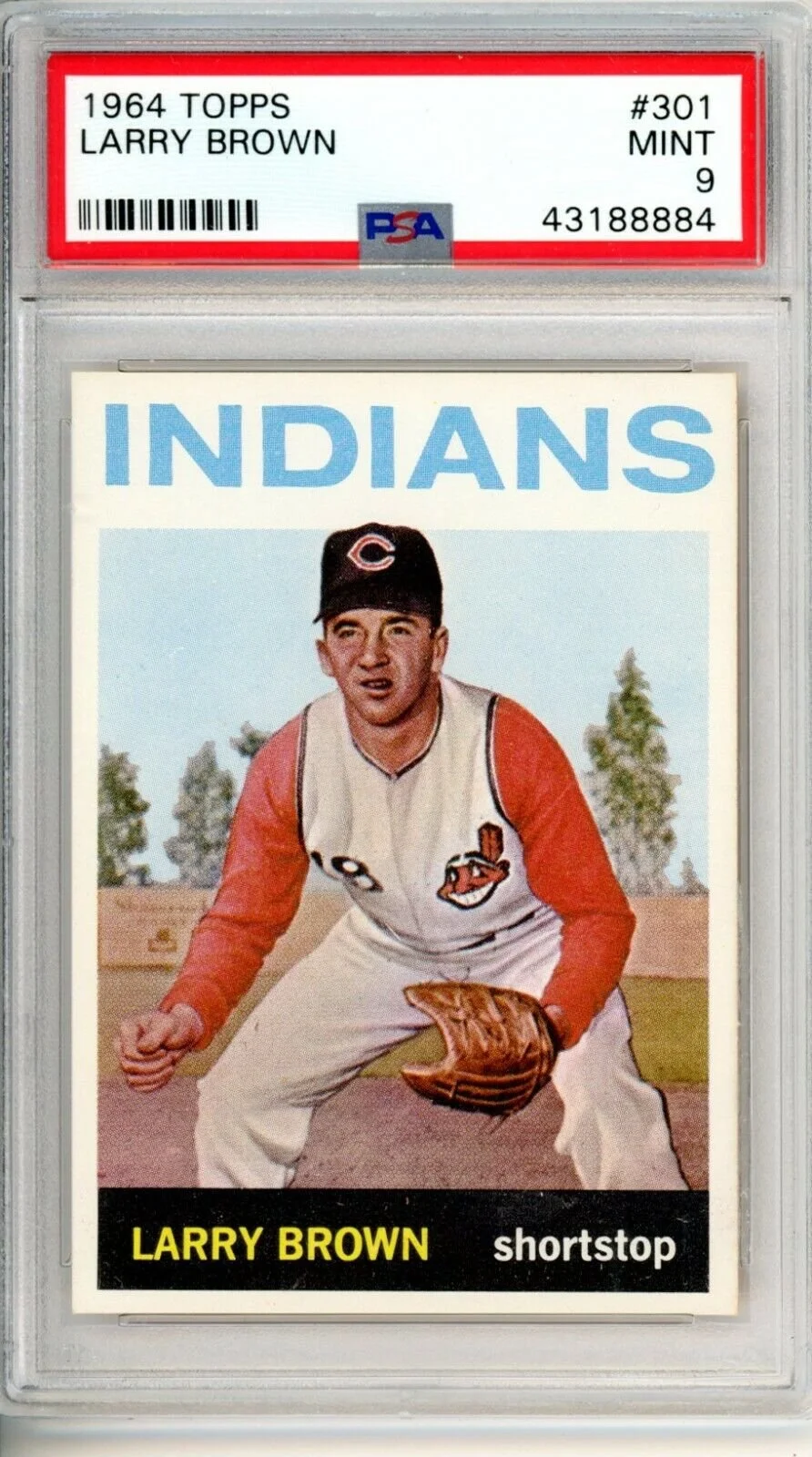 Shop › 1964 Topps Set Break PSA 9 #301 Larry Brown Indians 12959 Image 1 of 1 1964 Topps Set Break PSA 9 #301 Larry Brown Indians 12959 $63.00 Kriskepplersportscards Description Add To Cart Added! Kriskepplersportscards Description