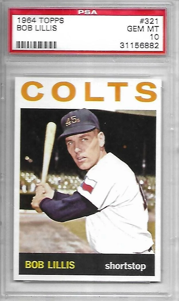 Shop › 1964 Topps Bob Lillis 321 PSA 10 POP 5 Colts 9850 Image 1 of 1 1964 Topps Bob Lillis 321 PSA 10 POP 5 Colts 9850 $921.69 Kriskepplersportscards Add To Cart Added! Kriskepplersportscards