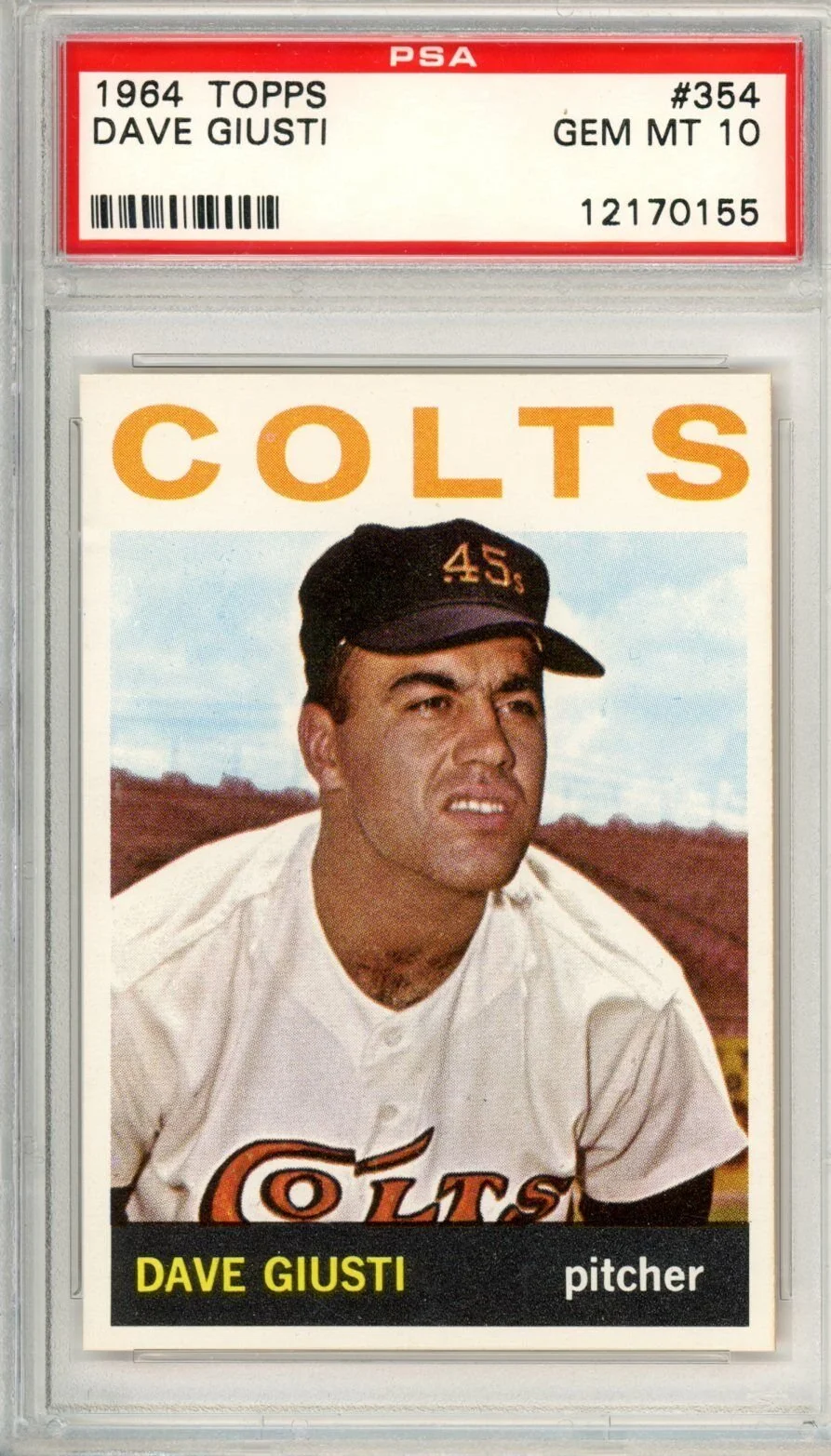 Shop › 1964 Topps Dave Guisti 354 PSA 10 POP 4 Colts 10776 Image 1 of 1 1964 Topps Dave Guisti 354 PSA 10 POP 4 Colts 10776 $1,225.00 Check out Kriskepplersportscards Add To Cart Added! Check out Kriskepplersportscards