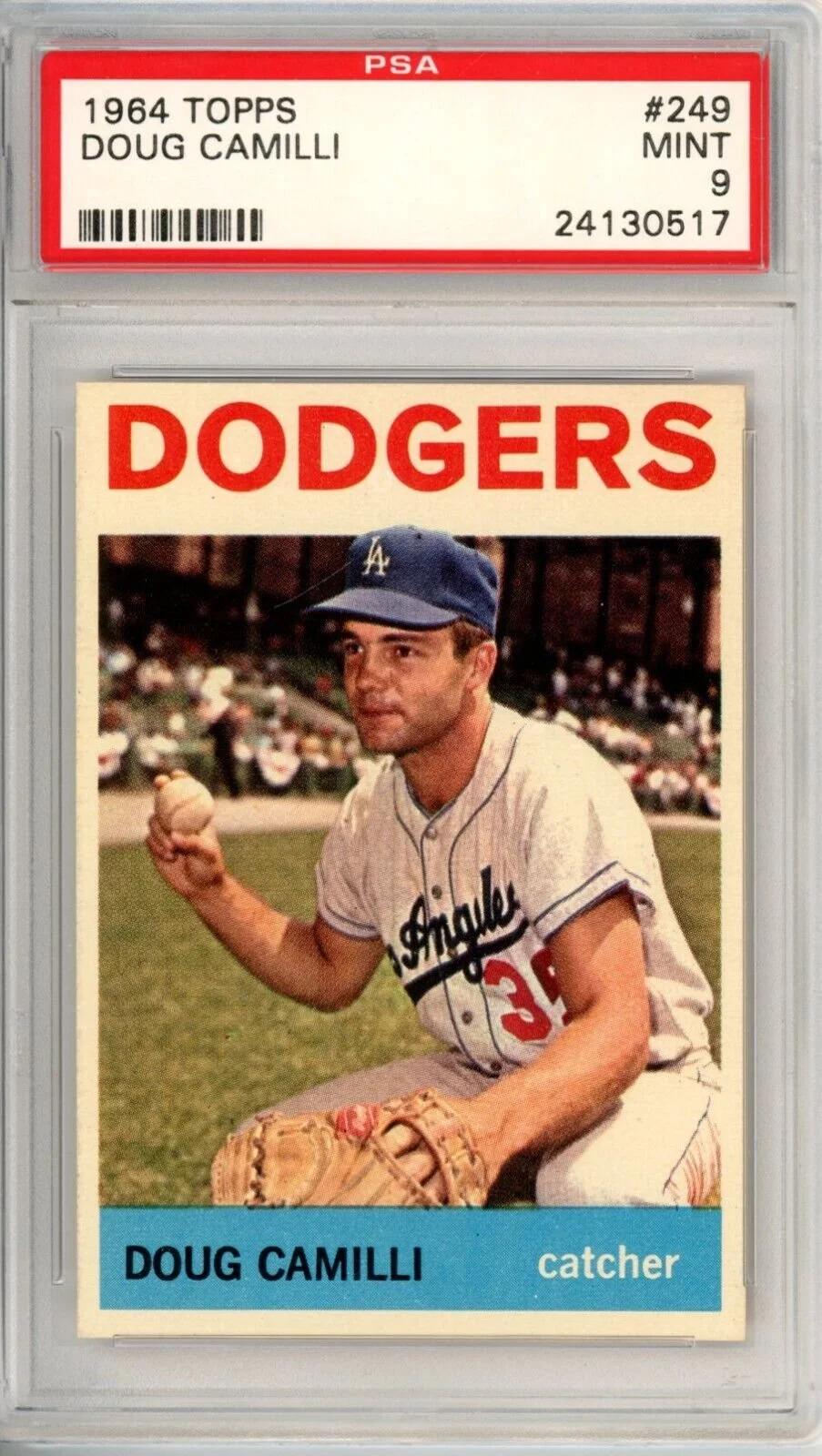 Shop › 1964 Topps Doug Camilli 249 PSA 9 Dodgers 12363 Image 1 of 1 1964 Topps Doug Camilli 249 PSA 9 Dodgers 12363 $890.01 Thousands of high grade PSA cards available New cards added weekly Always check KRISKEPPLERSPORTSCARDS Add To Cart Added! Thousands of high grade PSA cards available New cards added weekly Always check KRISKEPPLERSPORTSCARDS