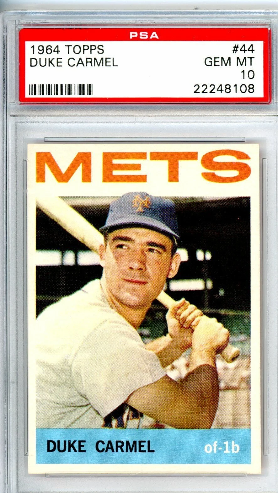 Shop › 1964 Topps Duke Carmel 44 PSA 10 POP 3 Mets 11346 Image 1 of 1 1964 Topps Duke Carmel 44 PSA 10 POP 3 Mets 11346 $1,553.00 Kriskepplersportscards Add To Cart Added! Kriskepplersportscards