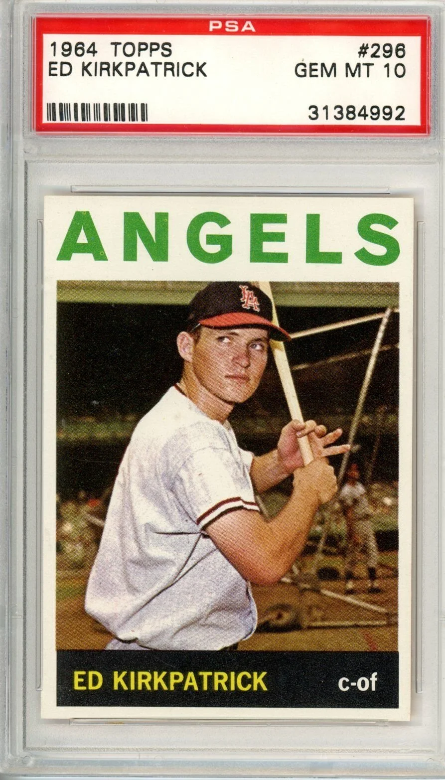 Shop › 1964 Topps Ed Kirpatrick 296 PSA 10 POP 4 Angels 10775 Image 1 of 1 1964 Topps Ed Kirpatrick 296 PSA 10 POP 4 Angels 10775 $1,274.00 Check out Kriskepplersportscards Add To Cart Added! Check out Kriskepplersportscards