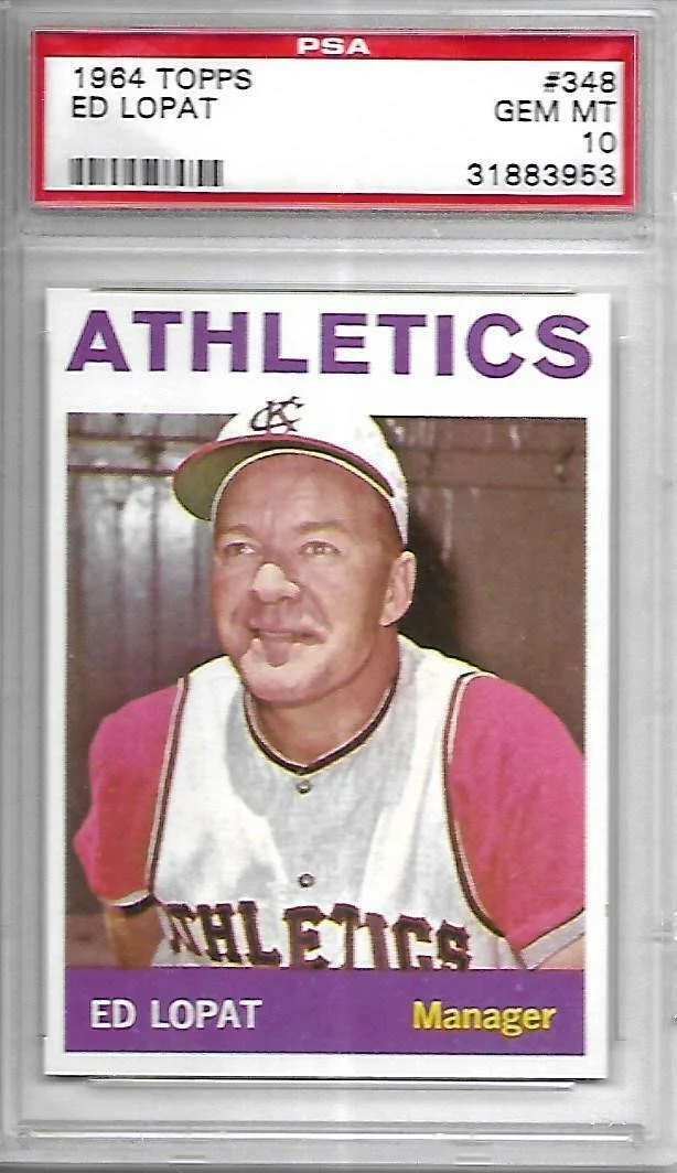 Shop › 1964 Topps Ed Lopat 348 PSA 10 POP 5 7848 Image 1 of 1 1964 Topps Ed Lopat 348 PSA 10 POP 5 7848 $921.69 Kriskepplersportscards Add To Cart Added! Kriskepplersportscards
