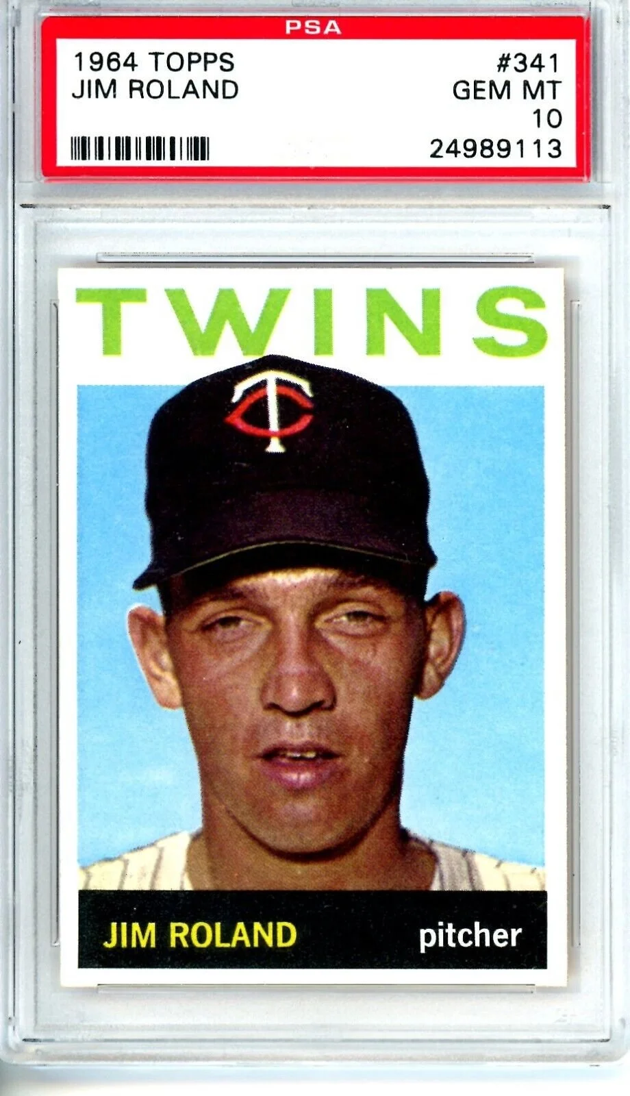 Shop › 1964 Topps Jim Roland 341 PSA 10 POP 5 Twins 10447 Image 1 of 1 1964 Topps Jim Roland 341 PSA 10 POP 5 Twins 10447 $873.18 Thousands of high grade PSA cards available New cards added weekly Always check KRISKEPPLERSPORTSCARDS Add To Cart Added! Thousands of high grade PSA cards available New cards added weekly Always check KRISKEPPLERSPORTSCARDS