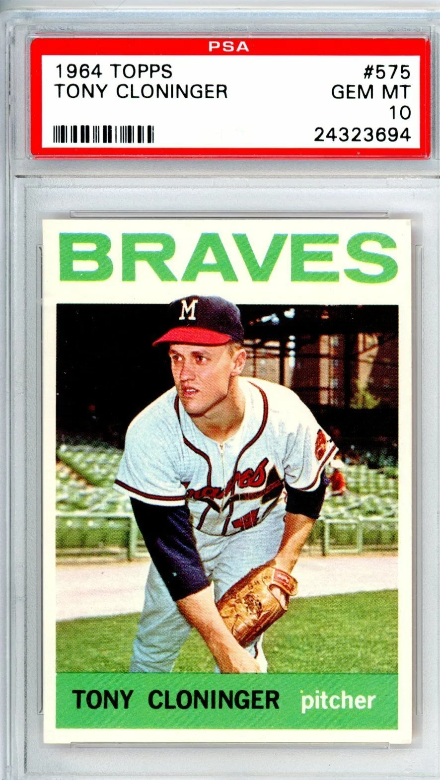 Shop › 1964 Topps Tonny Cloninger 575 PSA 10 POP 4 Braves 10665 Image 1 of 1 1964 Topps Tonny Cloninger 575 PSA 10 POP 4 Braves 10665 $1,274.00 Kriskepplersportscards Add To Cart Added! Kriskepplersportscards