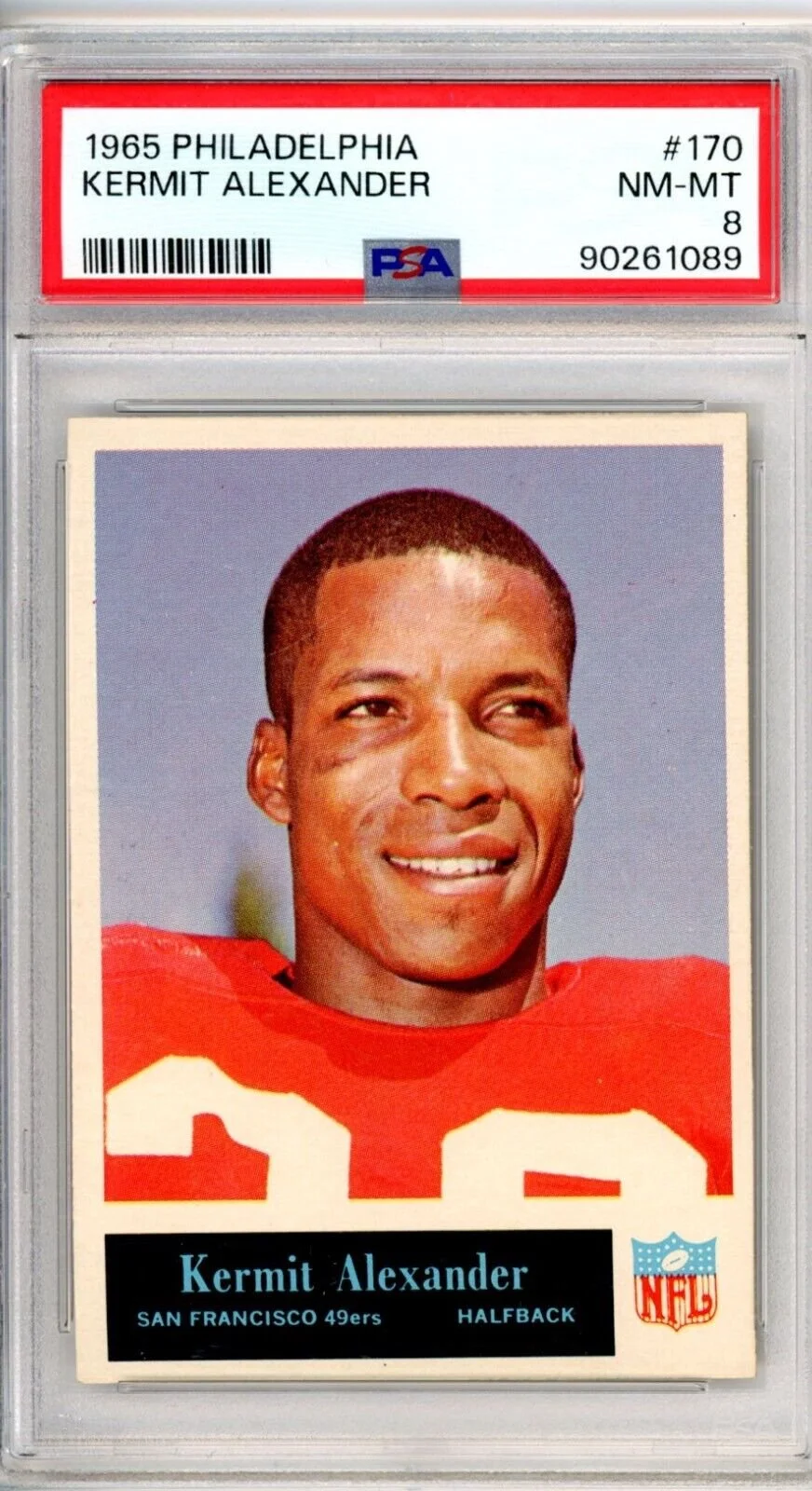 Shop › 1965 Philadelphia Kermit Alexander 170 PSA 8 49'ers 14711 Image 1 of 1 1965 Philadelphia Kermit Alexander 170 PSA 8 49'ers 14711 $20.00 sold out Thousands of high grade PSA cards available New cards added weekly Always check KRISKEPPLERSPORTSCARDS Sold Out Added! Thousands of high grade PSA cards available New cards added weekly Always check KRISKEPPLERSPORTSCARDS