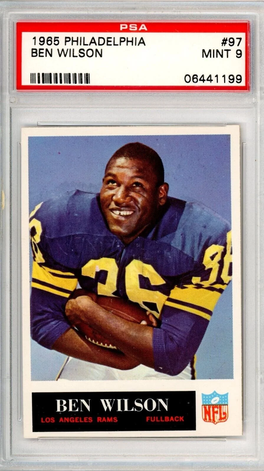 Shop › 1965 Philadephia Ben Wilson 97 PSA 9 14215 Rams Image 1 of 1 1965 Philadephia Ben Wilson 97 PSA 9 14215 Rams $395.00 Thousands of high grade PSA cards available New cards added weekly Always check KRISKEPPLERSPORTSCARDS Add To Cart Added! Thousands of high grade PSA cards available New cards added weekly Always check KRISKEPPLERSPORTSCARDS