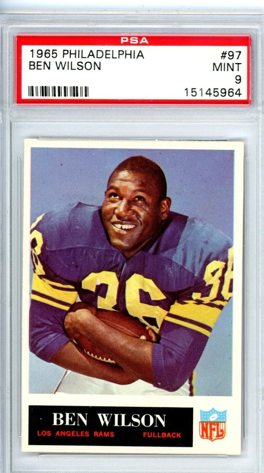 Shop › 1965 Philadephia Ben Wilson 97 PSA 9 Rams Image 1 of 1 1965 Philadephia Ben Wilson 97 PSA 9 Rams $249.00 Thousands of high grade PSA cards available New cards added weekly Always check KRISKEPPLERSPORTSCARDS Add To Cart Added! Thousands of high grade PSA cards available New cards added weekly Always check KRISKEPPLERSPORTSCARDS