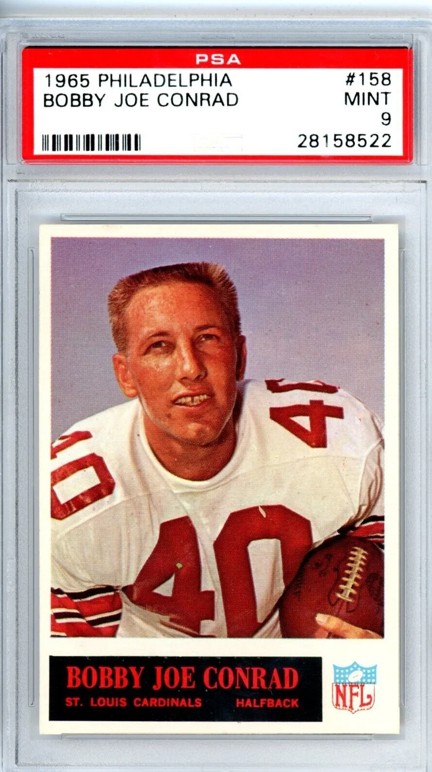 Shop › 1965 Philadephia Bobby Joe Conrad 158 PSA 9 Cardinals Image 1 of 1 1965 Philadephia Bobby Joe Conrad 158 PSA 9 Cardinals $800.00 Thousands of high grade PSA cards available New cards added weekly Always check KRISKEPPLERSPORTSCARDS Add To Cart Added! Thousands of high grade PSA cards available New cards added weekly Always check KRISKEPPLERSPORTSCARDS