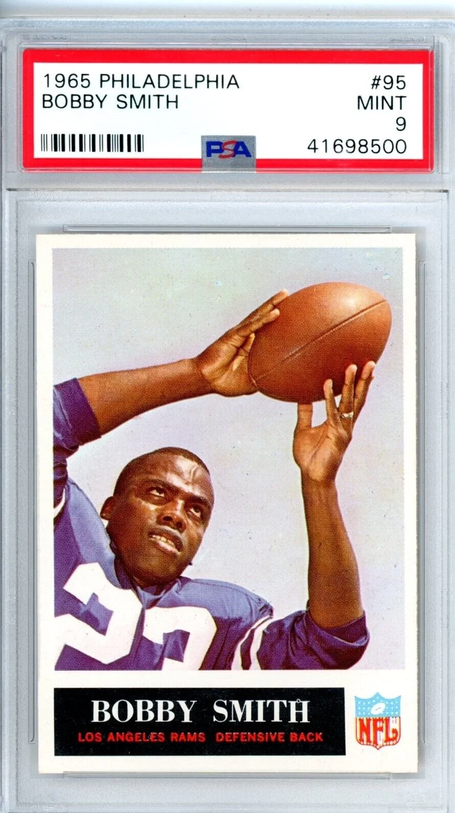 Shop › 1965 Philadephia Bobby Smith 95 PSA 9 Rams Image 1 of 1 1965 Philadephia Bobby Smith 95 PSA 9 Rams $99.00 Thousands of high grade PSA cards available New cards added weekly Always check KRISKEPPLERSPORTSCARDS Add To Cart Added! Thousands of high grade PSA cards available New cards added weekly Always check KRISKEPPLERSPORTSCARDS
