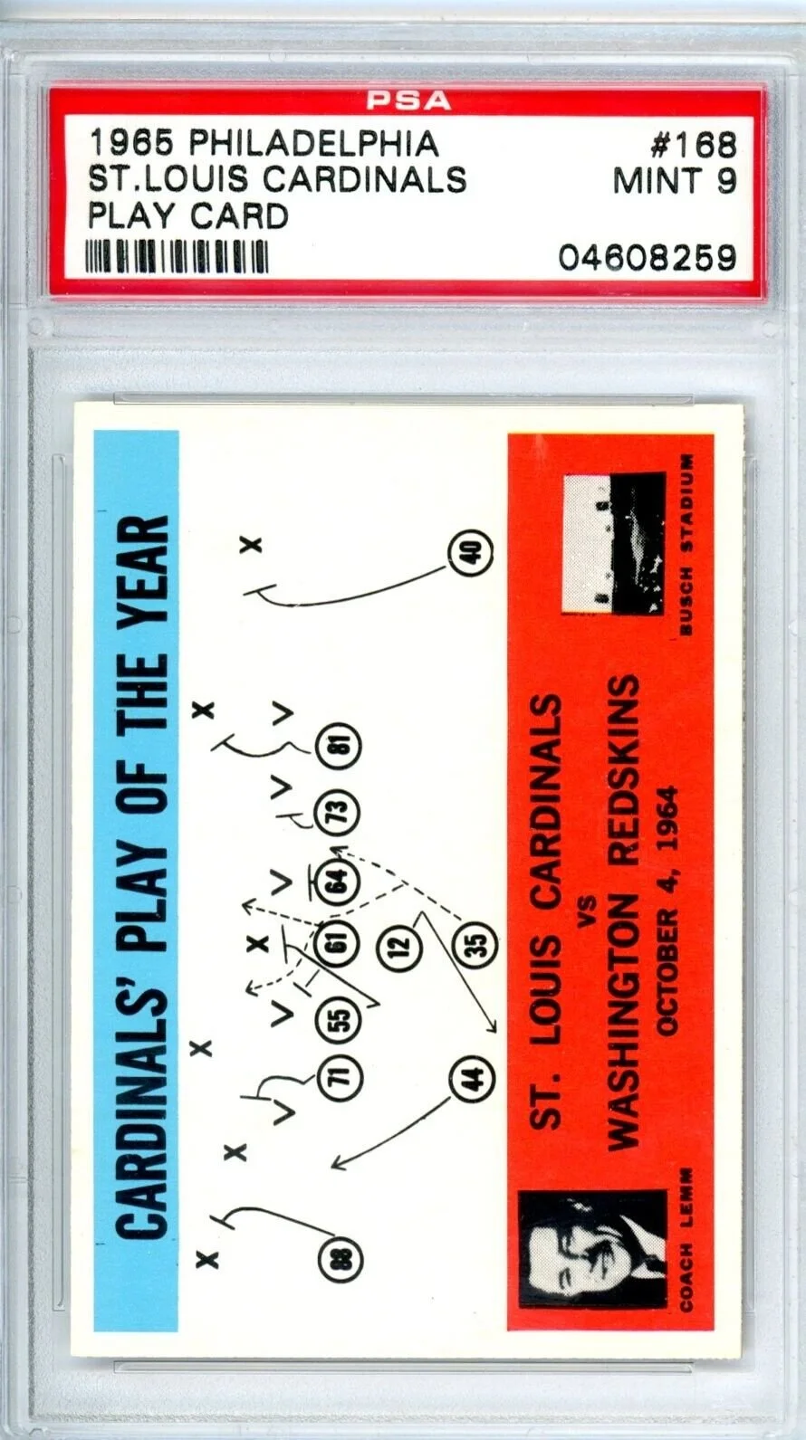 Shop › 1965 Philadephia Cardinals Play Card 168 PSA 9 Cardinals Image 1 of 1 1965 Philadephia Cardinals Play Card 168 PSA 9 Cardinals $400.00 Thousands of high grade PSA cards available New cards added weekly Always check KRISKEPPLERSPORTSCARDS Add To Cart Added! Thousands of high grade PSA cards available New cards added weekly Always check KRISKEPPLERSPORTSCARDS