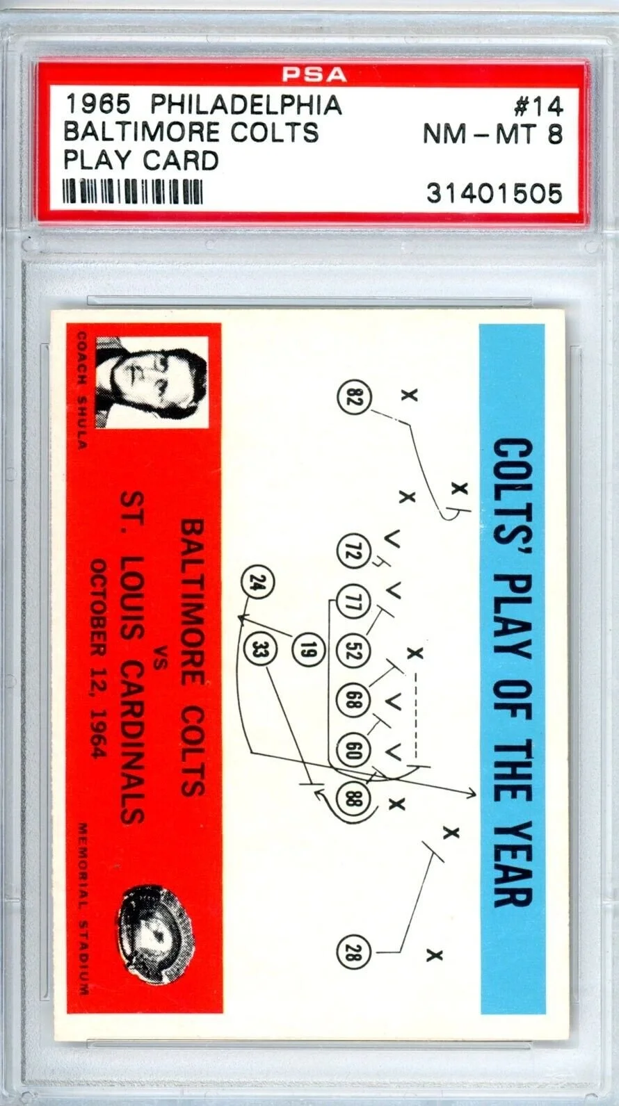 Shop › 1965 Philadephia Colts Play Card 14 PSA 8 Colts Image 1 of 1 1965 Philadephia Colts Play Card 14 PSA 8 Colts $75.00 Thousands of high grade PSA cards available New cards added weekly Always check KRISKEPPLERSPORTSCARDS Add To Cart Added! Thousands of high grade PSA cards available New cards added weekly Always check KRISKEPPLERSPORTSCARDS