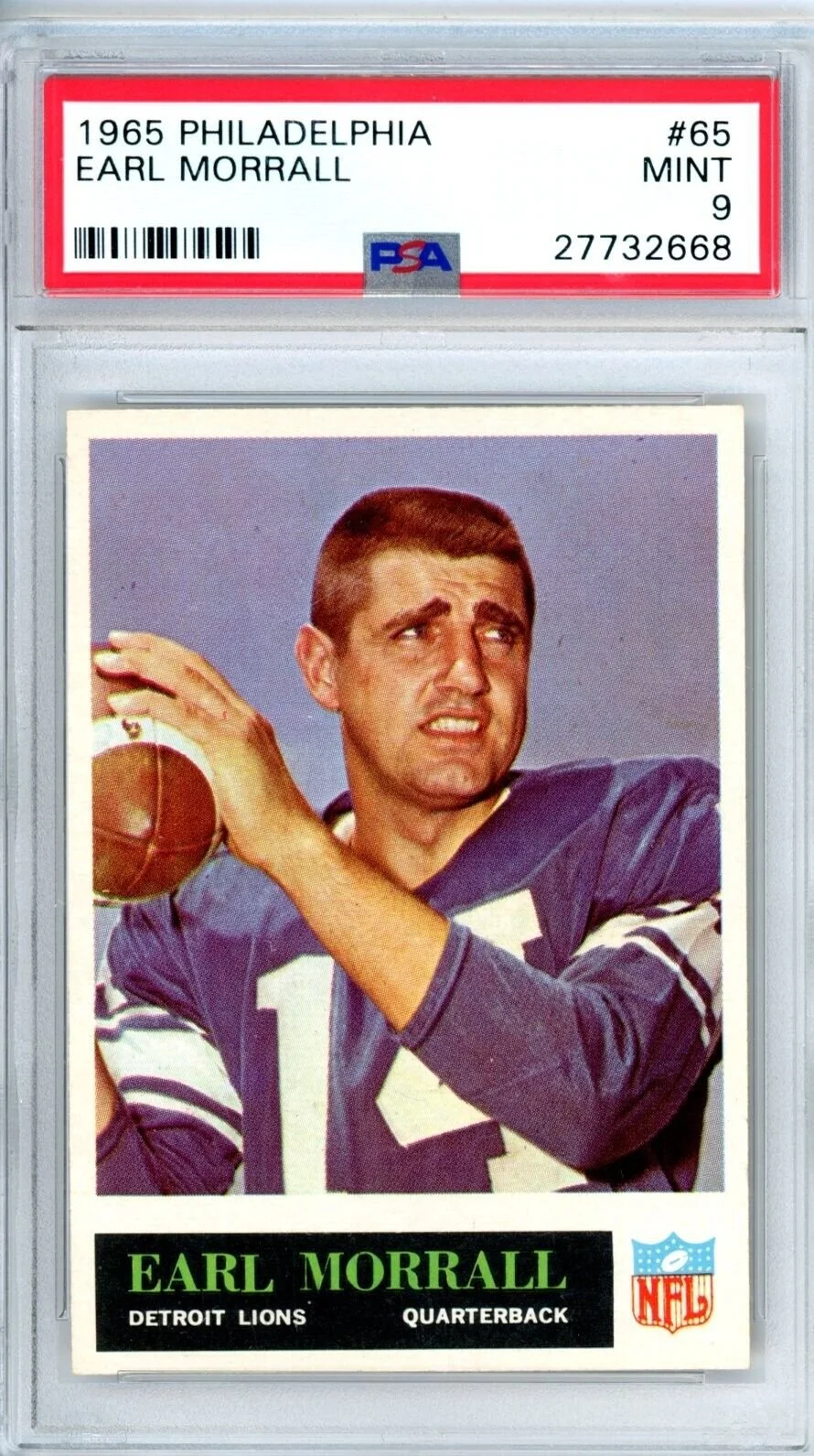 Shop › 1965 Philadephia Earl Morrall 65 PSA 9 Lions Image 1 of 1 1965 Philadephia Earl Morrall 65 PSA 9 Lions $250.00 Thousands of high grade PSA cards available New cards added weekly Always check KRISKEPPLERSPORTSCARDS Add To Cart Added! Thousands of high grade PSA cards available New cards added weekly Always check KRISKEPPLERSPORTSCARDS