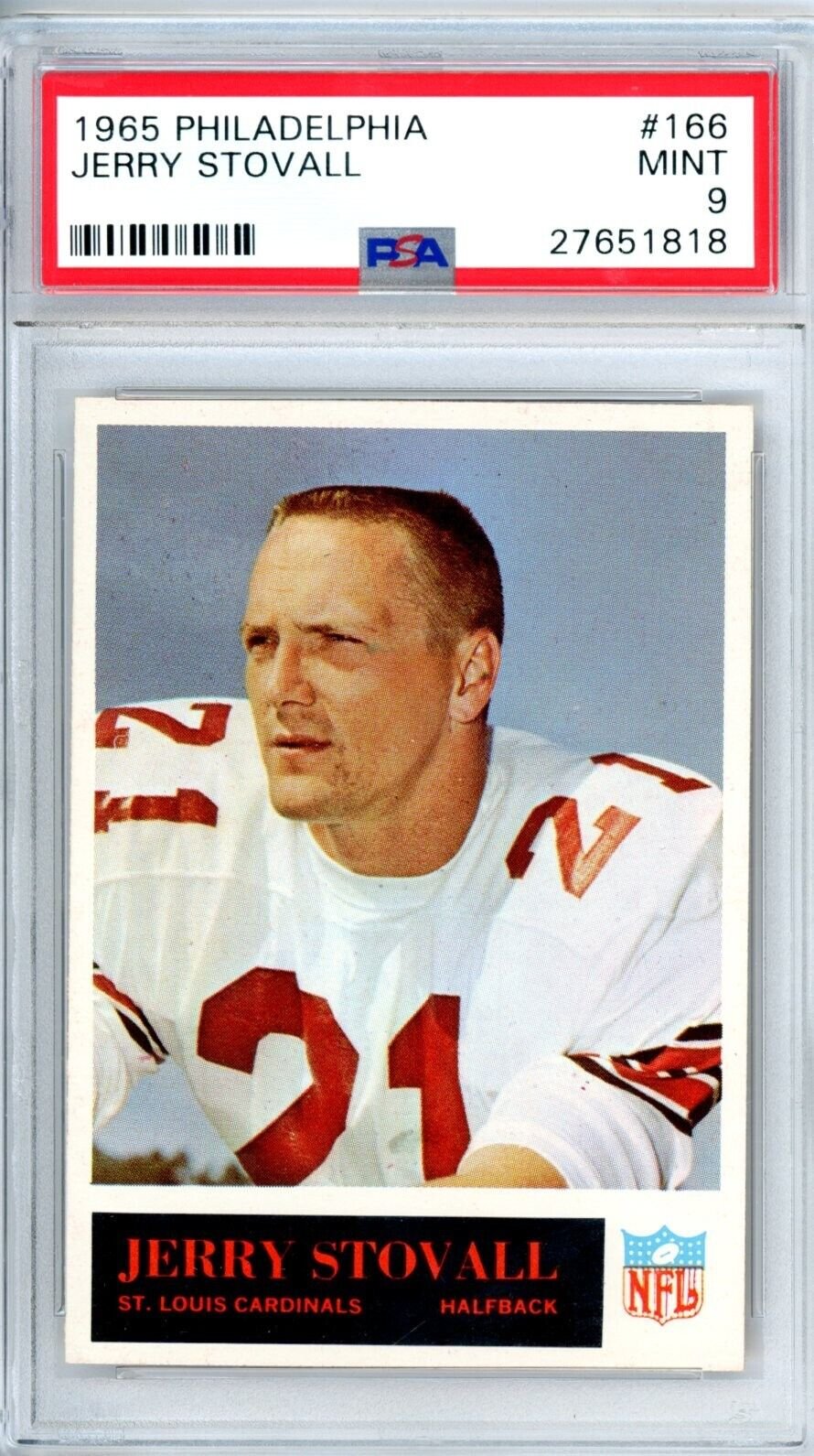 Shop › 1965 Philadephia Jerry Stovall 166 PSA 9 Cardinals Image 1 of 1 1965 Philadephia Jerry Stovall 166 PSA 9 Cardinals $600.00 Thousands of high grade PSA cards available New cards added weekly Always check KRISKEPPLERSPORTSCARDS Add To Cart Added! Thousands of high grade PSA cards available New cards added weekly Always check KRISKEPPLERSPORTSCARDS