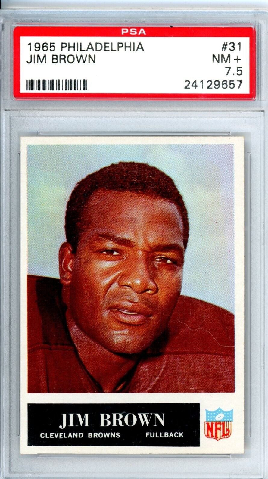 Shop › 1965 Philadephia Jim Brown 31 PSA 7.5 Browns Image 1 of 1 1965 Philadephia Jim Brown 31 PSA 7.5 Browns $497.00 Thousands of high grade PSA cards available New cards added weekly Always check KRISKEPPLERSPORTSCARDS Add To Cart Added! Thousands of high grade PSA cards available New cards added weekly Always check KRISKEPPLERSPORTSCARDS