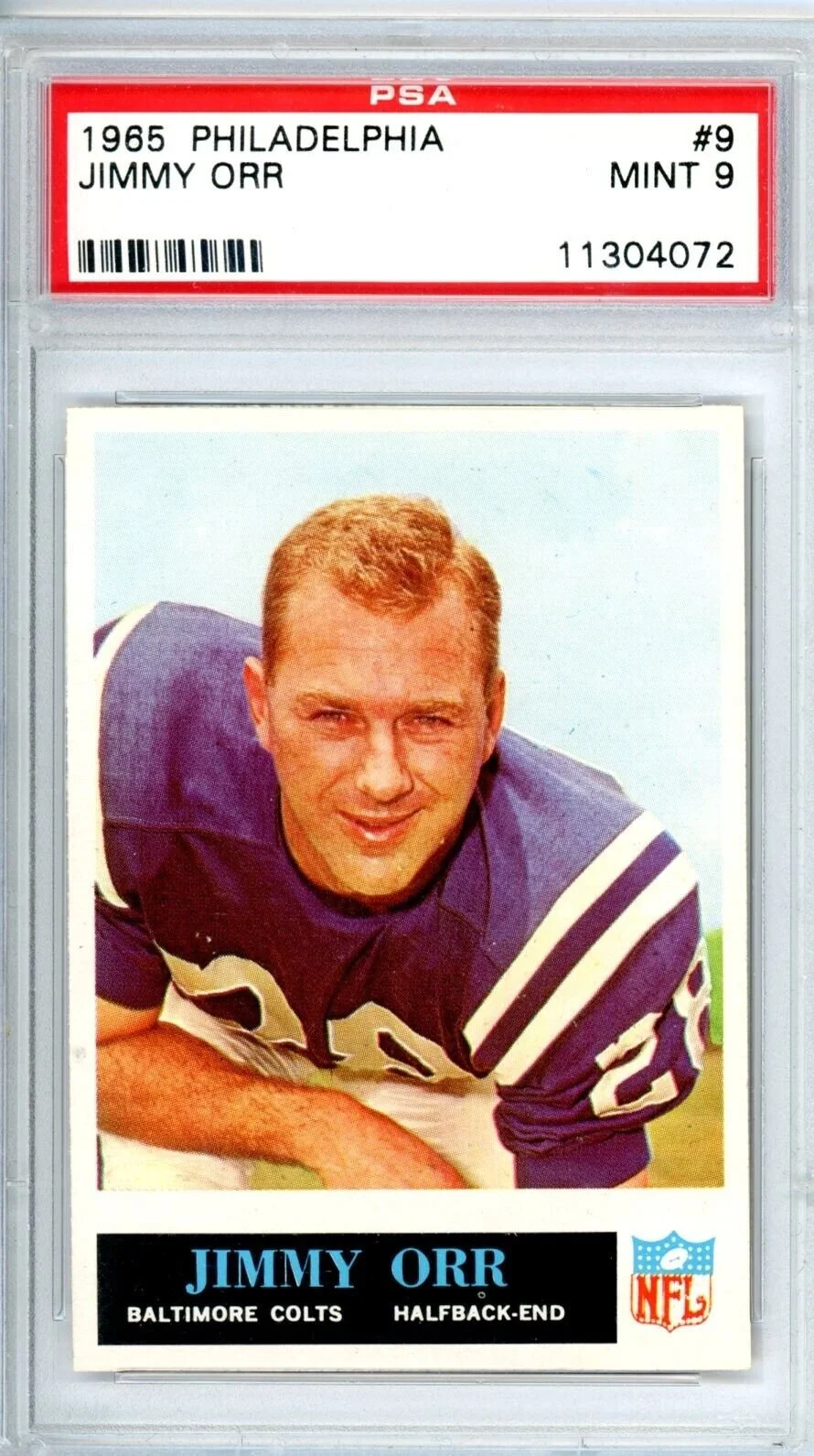 Shop › 1965 Philadephia Jimmy Orr 9 PSA 9 Colts Image 1 of 1 1965 Philadephia Jimmy Orr 9 PSA 9 Colts $396.00 Thousands of high grade PSA cards available New cards added weekly Always check KRISKEPPLERSPORTSCARDS Add To Cart Added! Thousands of high grade PSA cards available New cards added weekly Always check KRISKEPPLERSPORTSCARDS