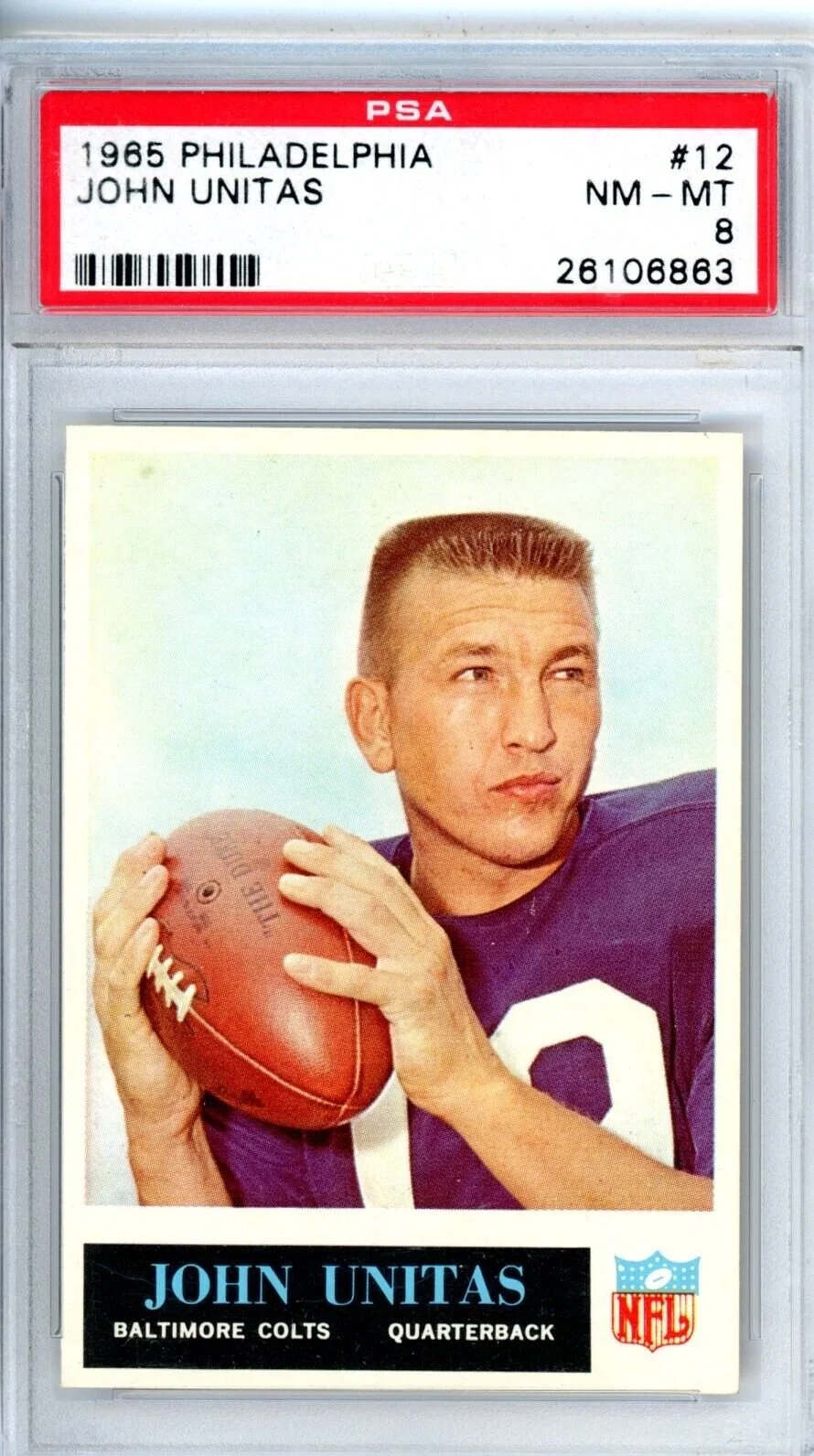 Shop › 1965 Philadephia Johnny Unitas 12 PSA 8 Colts Image 1 of 1 1965 Philadephia Johnny Unitas 12 PSA 8 Colts $400.00 Thousands of high grade PSA cards available New cards added weekly Always check KRISKEPPLERSPORTSCARDS Add To Cart Added! Thousands of high grade PSA cards available New cards added weekly Always check KRISKEPPLERSPORTSCARDS