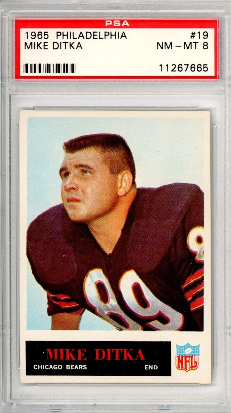 Shop › 1965 Philadephia Mike Ditka 19 PSA 8 14150 Bears Image 1 of 1 1965 Philadephia Mike Ditka 19 PSA 8 14150 Bears $246.00 Thousands of high grade PSA cards available New cards added weekly Always check KRISKEPPLERSPORTSCARDS Add To Cart Added! Thousands of high grade PSA cards available New cards added weekly Always check KRISKEPPLERSPORTSCARDS