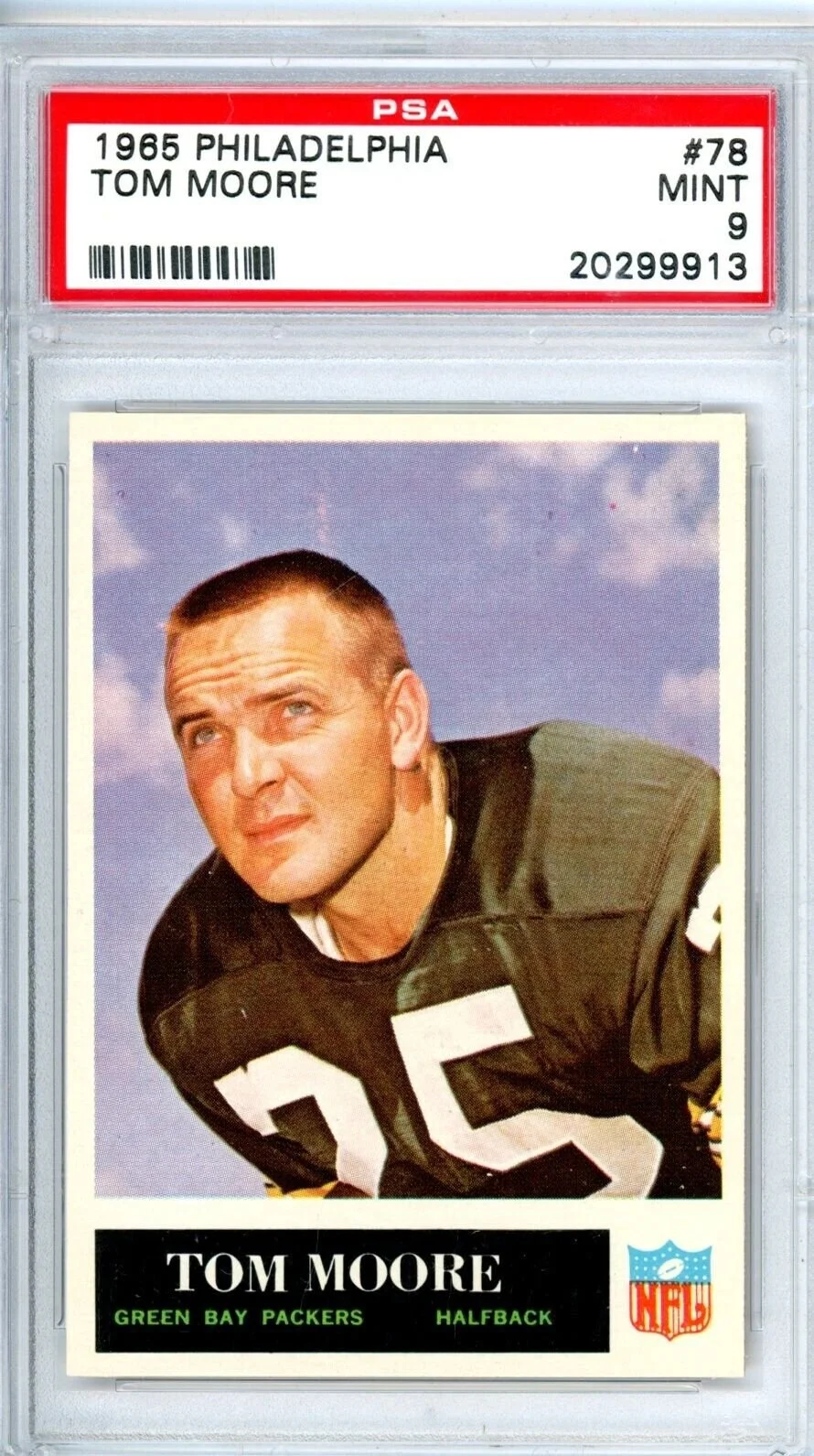 Shop › 1965 Philadephia Tom Moore 78 PSA 9 Packers Image 1 of 1 1965 Philadephia Tom Moore 78 PSA 9 Packers $397.00 Thousands of high grade PSA cards available New cards added weekly Always check KRISKEPPLERSPORTSCARDS Add To Cart Added! Thousands of high grade PSA cards available New cards added weekly Always check KRISKEPPLERSPORTSCARDS