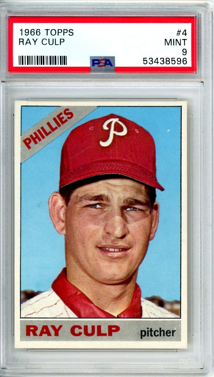 Shop › 1966 Topps Ray Culp #4 PSA 9 Phillies 10710 Image 1 of 1 1966 Topps Ray Culp #4 PSA 9 Phillies 10710 $343.00 Thousands of high grade PSA cards available New cards added weekly Always check KRISKEPPLERSPORTSCARDS Add To Cart Added! Thousands of high grade PSA cards available New cards added weekly Always check KRISKEPPLERSPORTSCARDS