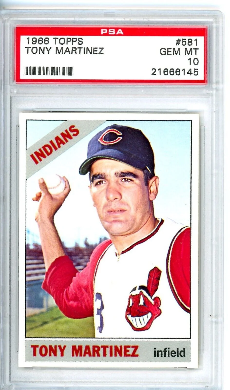 Shop › 1966 Topps Tony Martinez #581 PSA 10 Indians 12603 Image 1 of 1 1966 Topps Tony Martinez #581 PSA 10 Indians 12603 $588.00 Thousands of high grade PSA cards available New cards added weekly Always check KRISKEPPLERSPORTSCARDS Add To Cart Added! Thousands of high grade PSA cards available New cards added weekly Always check KRISKEPPLERSPORTSCARDS