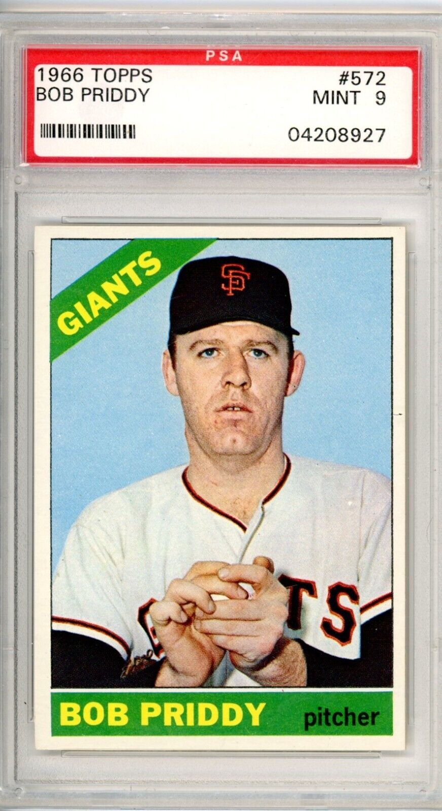 Shop › 1966 Topps Bob Priddy 572 PSA 9 Giants 15094 Image 1 of 1 1966 Topps Bob Priddy 572 PSA 9 Giants 15094 $100.00 Thousands of high grade PSA cards available New cards added weekly Always check KRISKEPPLERSPORTSCARDS Add To Cart Added! Thousands of high grade PSA cards available New cards added weekly Always check KRISKEPPLERSPORTSCARDS
