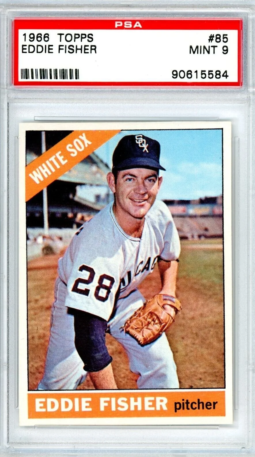 Shop › 1966 Topps Eddie Fisher 85 PSA 9 White Sox 13079 Image 1 of 1 1966 Topps Eddie Fisher 85 PSA 9 White Sox 13079 $200.00 Thousands of high grade PSA cards available New cards added weekly Always check KRISKEPPLERSPORTSCARDS Add To Cart Added! Thousands of high grade PSA cards available New cards added weekly Always check KRISKEPPLERSPORTSCARDS