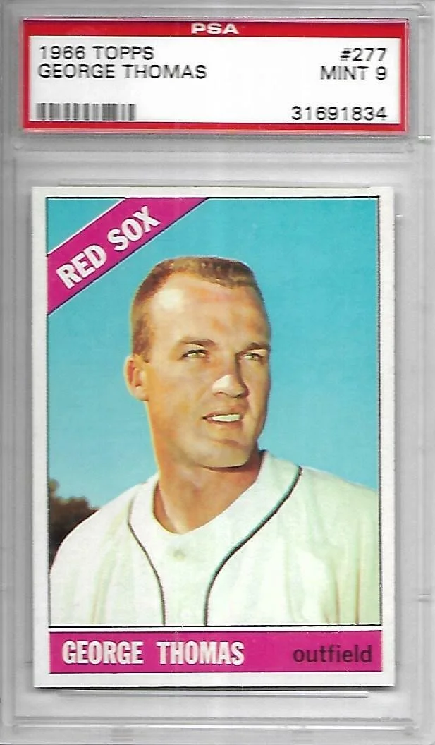 Shop › 1966 Topps George Thomas 277 PSA 9 Red Sox 9689 Image 1 of 1 1966 Topps George Thomas 277 PSA 9 Red Sox 9689 $58.00 Kriskepplersportscards Add To Cart Added! Kriskepplersportscards
