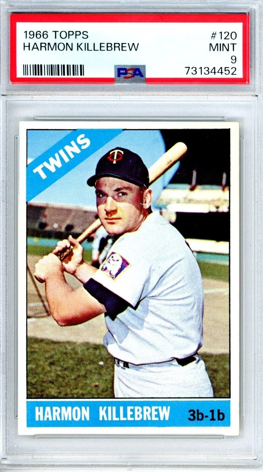 Shop › 1966 Topps Harmon Killebrew 120 PSA 9 Twins 12335 Image 1 of 1 1966 Topps Harmon Killebrew 120 PSA 9 Twins 12335 $1,193.00 Thousands of high grade PSA cards available New cards added weekly Always check KRISKEPPLERSPORTSCARDS Add To Cart Added! Thousands of high grade PSA cards available New cards added weekly Always check KRISKEPPLERSPORTSCARDS