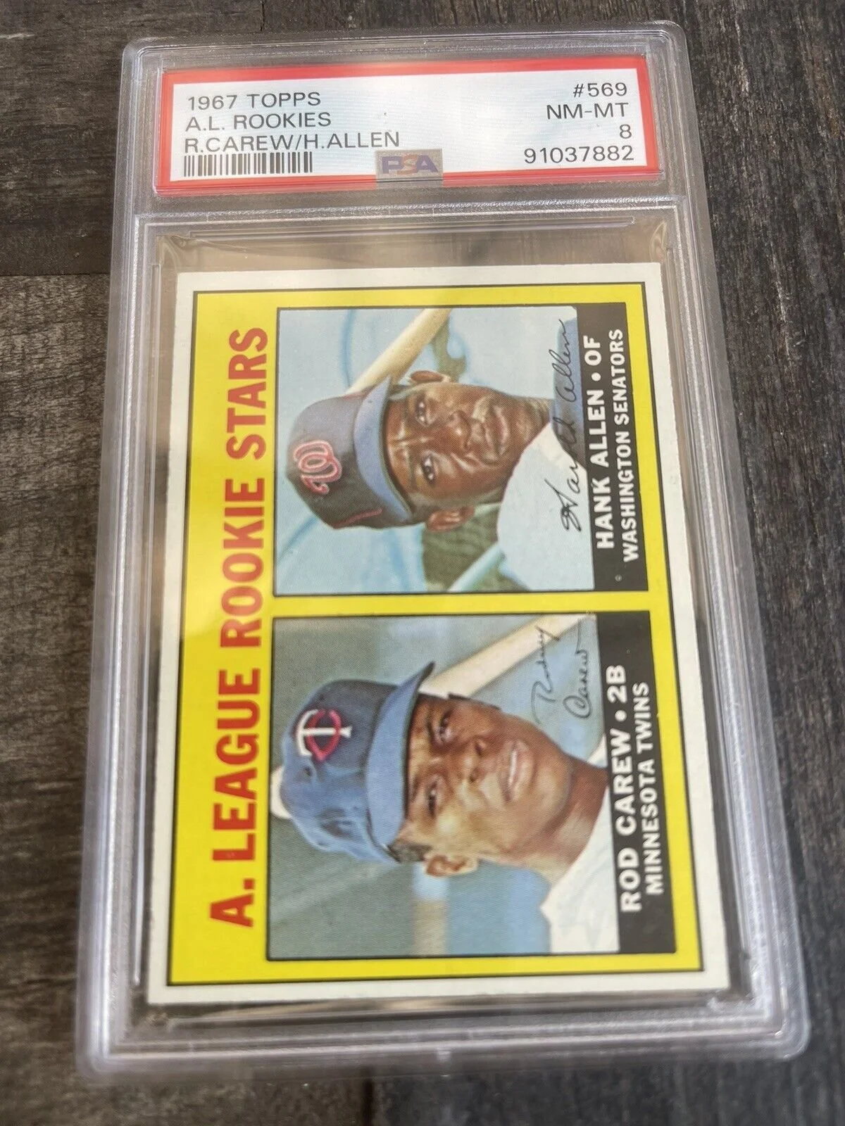 Shop › 1967 Topps AL Rookies #596 Rod Carew PSA 8 Image 1 of 1 1967 Topps AL Rookies #596 Rod Carew PSA 8 $3,815.00 1967 Topps AL Rookies #596 Rod Carew PSA 8. Condition is Graded. Shipped with USPS Ground Advantage. Add To Cart Added! 1967 Topps AL Rookies #596 Rod Carew PSA 8. Condition is Graded. Shipped with USPS Ground Advantage.