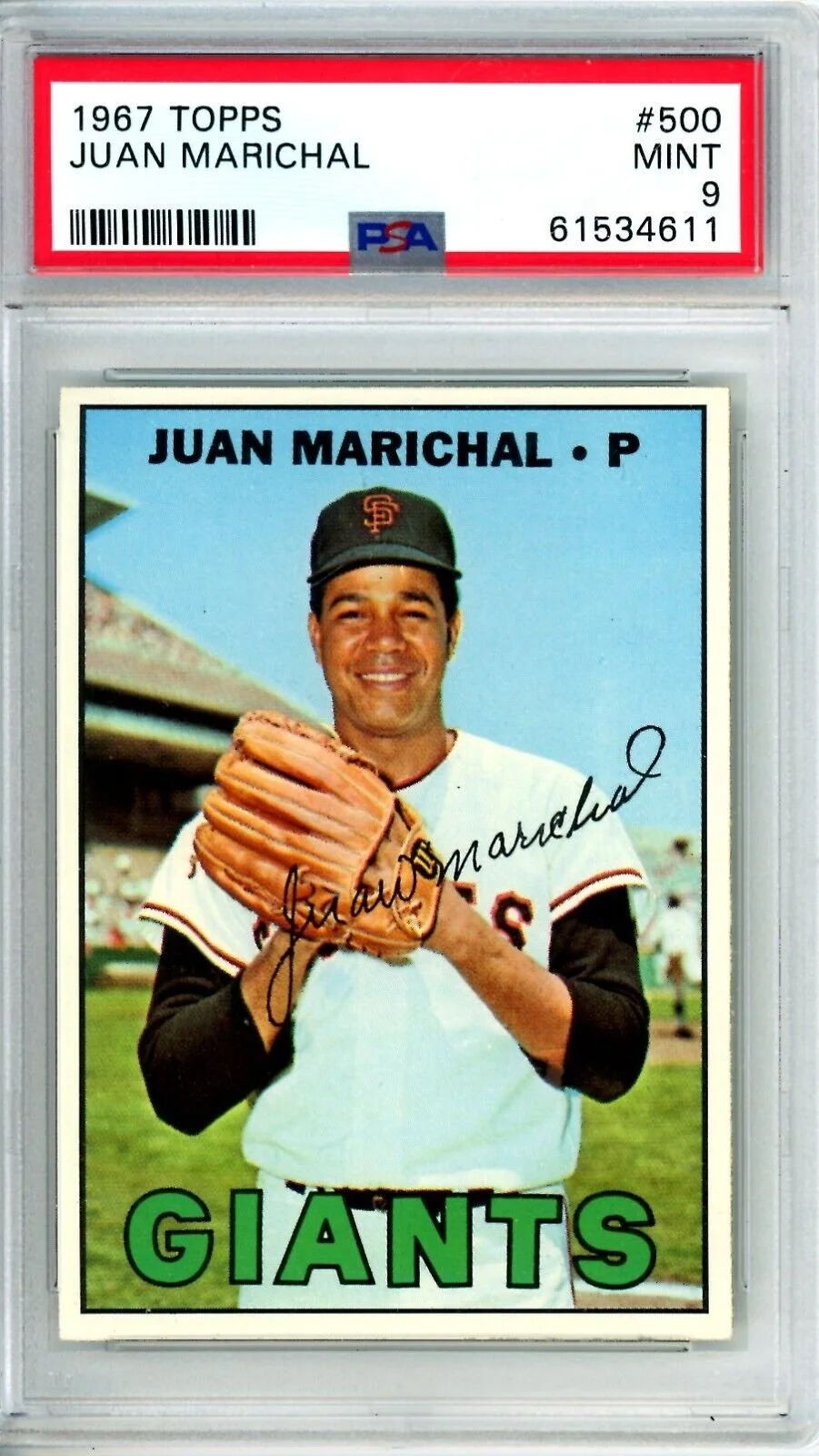 Shop › 1967 Topps Juan Marichal PSA 9 #500 Giants 12172 Image 1 of 1 1967 Topps Juan Marichal PSA 9 #500 Giants 12172 $533.00 Thousands of high grade PSA cards available New cards added weekly Always check KRISKEPPLERSPORTSCARDS Add To Cart Added! Thousands of high grade PSA cards available New cards added weekly Always check KRISKEPPLERSPORTSCARDS