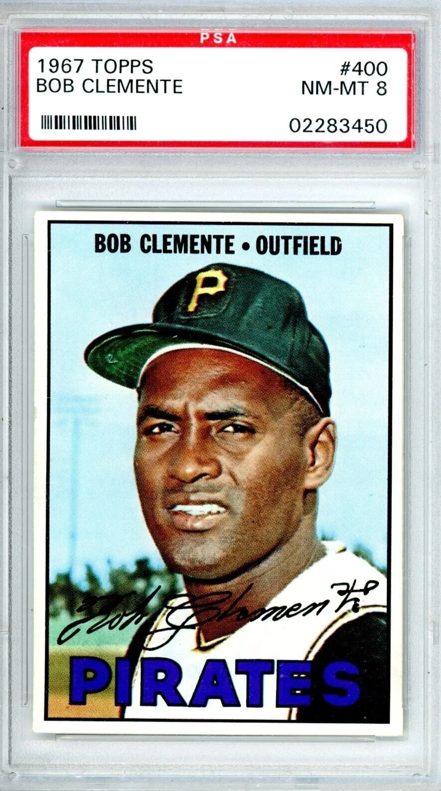 Shop › 1967 Topps Roberto Clemente 400 PSA 8 Pirates 12345 Image 1 of 1 1967 Topps Roberto Clemente 400 PSA 8 Pirates 12345 $1,557.00 Thousands of high grade PSA cards available New cards added weekly Always check KRISKEPPLERSPORTSCARDS Add To Cart Added! Thousands of high grade PSA cards available New cards added weekly Always check KRISKEPPLERSPORTSCARDS