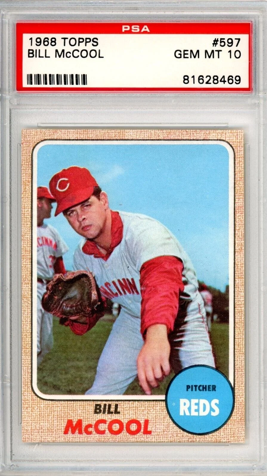 Shop › 1968 Topps Bill McCool 597 PSA 10 Reds 13035 Image 1 of 1 1968 Topps Bill McCool 597 PSA 10 Reds 13035 $1,198.00 Thousands of high grade PSA cards available New cards added weekly Always check KRISKEPPLERSPORTSCARDS Add To Cart Added! Thousands of high grade PSA cards available New cards added weekly Always check KRISKEPPLERSPORTSCARDS