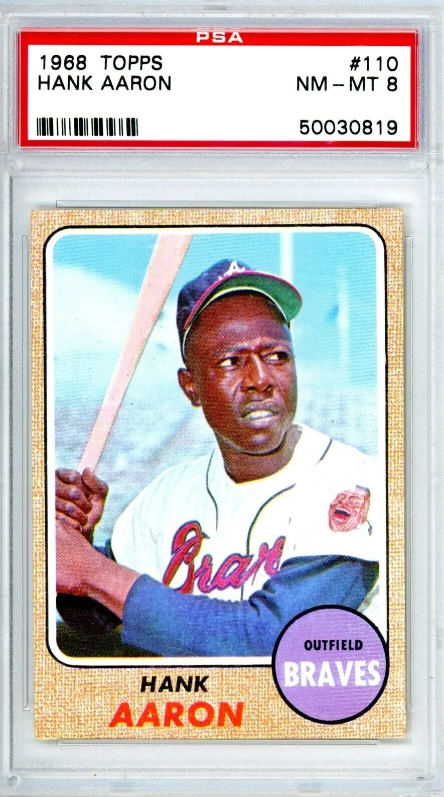 Shop › 1968 Topps Hank Aaron PSA 8 110 14008 Image 1 of 1 1968 Topps Hank Aaron PSA 8 110 14008 $1,147.00 Thousands of high grade PSA cards available New cards added weekly Always check KRISKEPPLERSPORTSCARDS Add To Cart Added! Thousands of high grade PSA cards available New cards added weekly Always check KRISKEPPLERSPORTSCARDS
