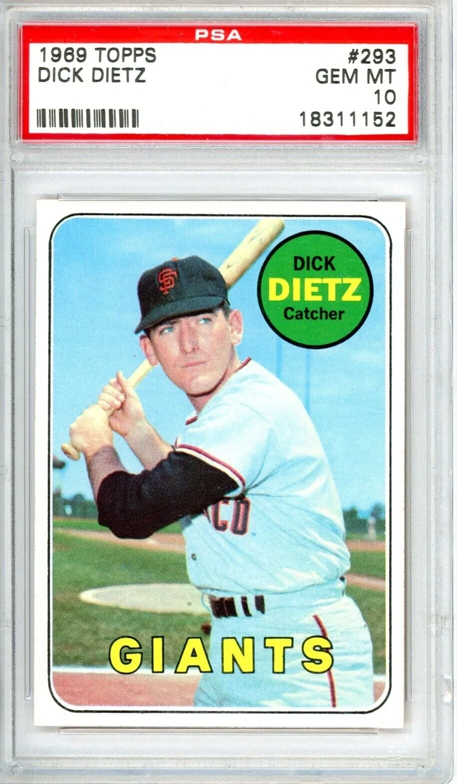 Shop › 1969 Topps Dick Dietz #293 PSA 10 Giants Image 1 of 1 1969 Topps Dick Dietz #293 PSA 10 Giants $1,982.00 Thousands of high grade PSA cards available New cards added weekly Always check KRISKEPPLERSPORTSCARDS Add To Cart Added! Thousands of high grade PSA cards available New cards added weekly Always check KRISKEPPLERSPORTSCARDS