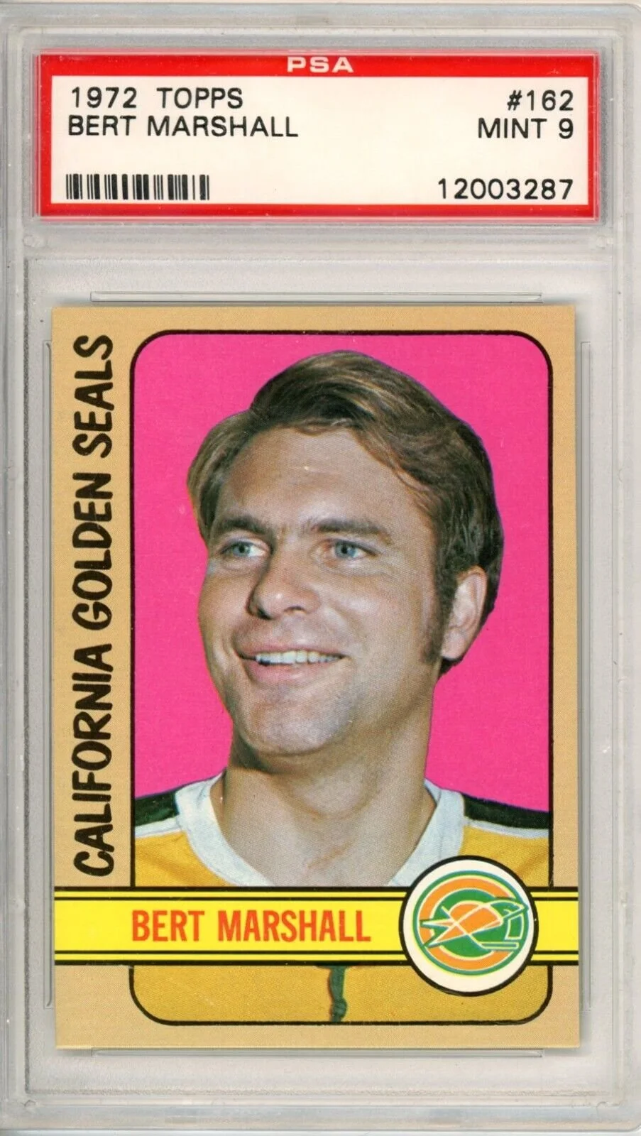 Shop › 1972 Topps Bert Marshall 162 PSA 9 Golden Seals 4436 Image 1 of 1 1972 Topps Bert Marshall 162 PSA 9 Golden Seals 4436 $18.00 Thousands of high grade PSA cards available New cards added weekly Always check KRISKEPPLERSPORTSCARDS Add To Cart Added! Thousands of high grade PSA cards available New cards added weekly Always check KRISKEPPLERSPORTSCARDS