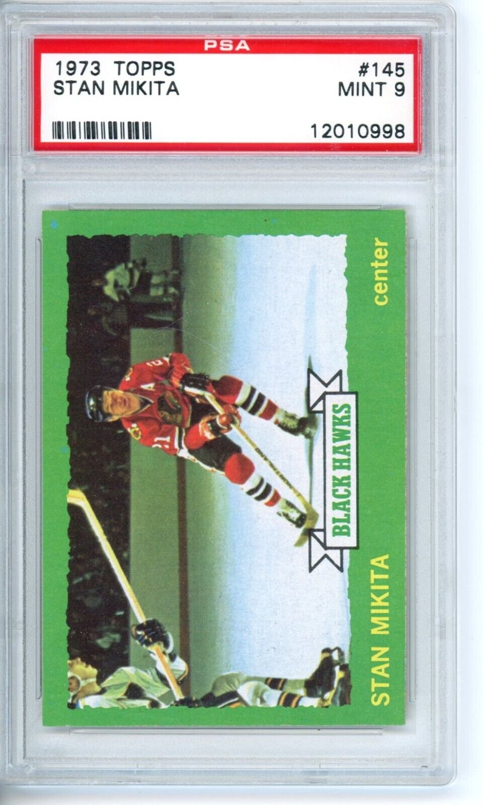 Shop › 1973 Topps Stan Mikita 145 PSA 9 Blackhawks 12993 Image 1 of 1 1973 Topps Stan Mikita 145 PSA 9 Blackhawks 12993 $122.00 Thousands of high grade PSA cards available New cards added weekly Always check KRISKEPPLERSPORTSCARDS Add To Cart Added! Thousands of high grade PSA cards available New cards added weekly Always check KRISKEPPLERSPORTSCARDS