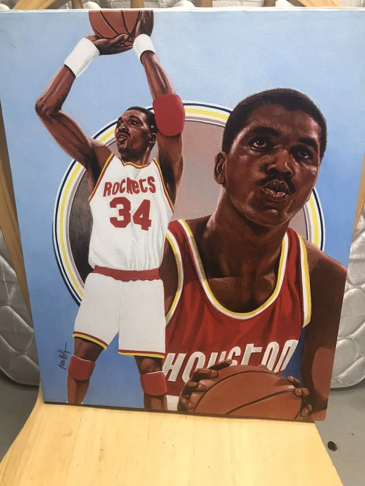 Hakeem Olajuwon Rockets Original 16 * 20 Leon Wolf Painting #2