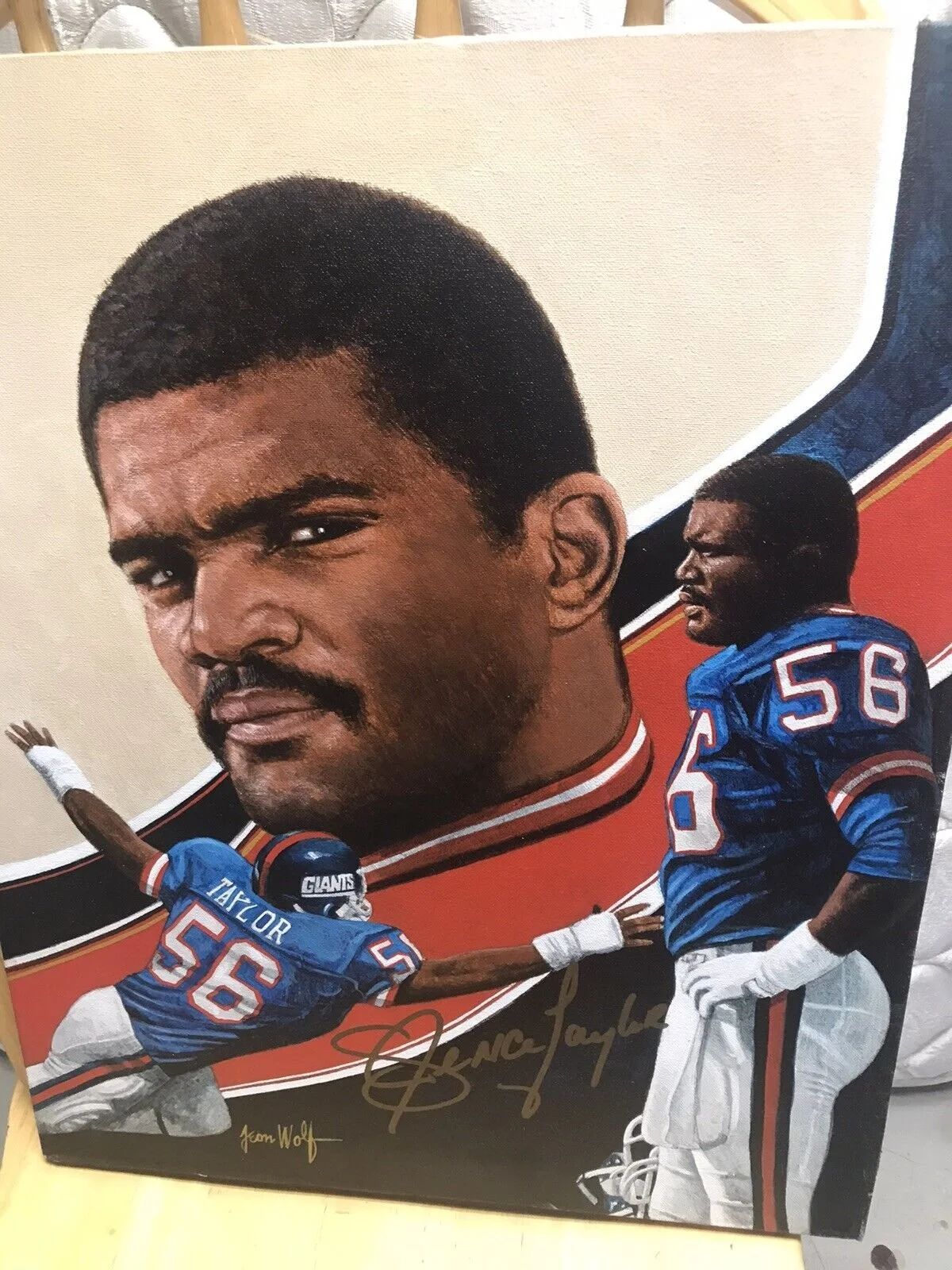Lawrence Taylor Autographed Giants Original 16 * 20 Leon Wolf Painting