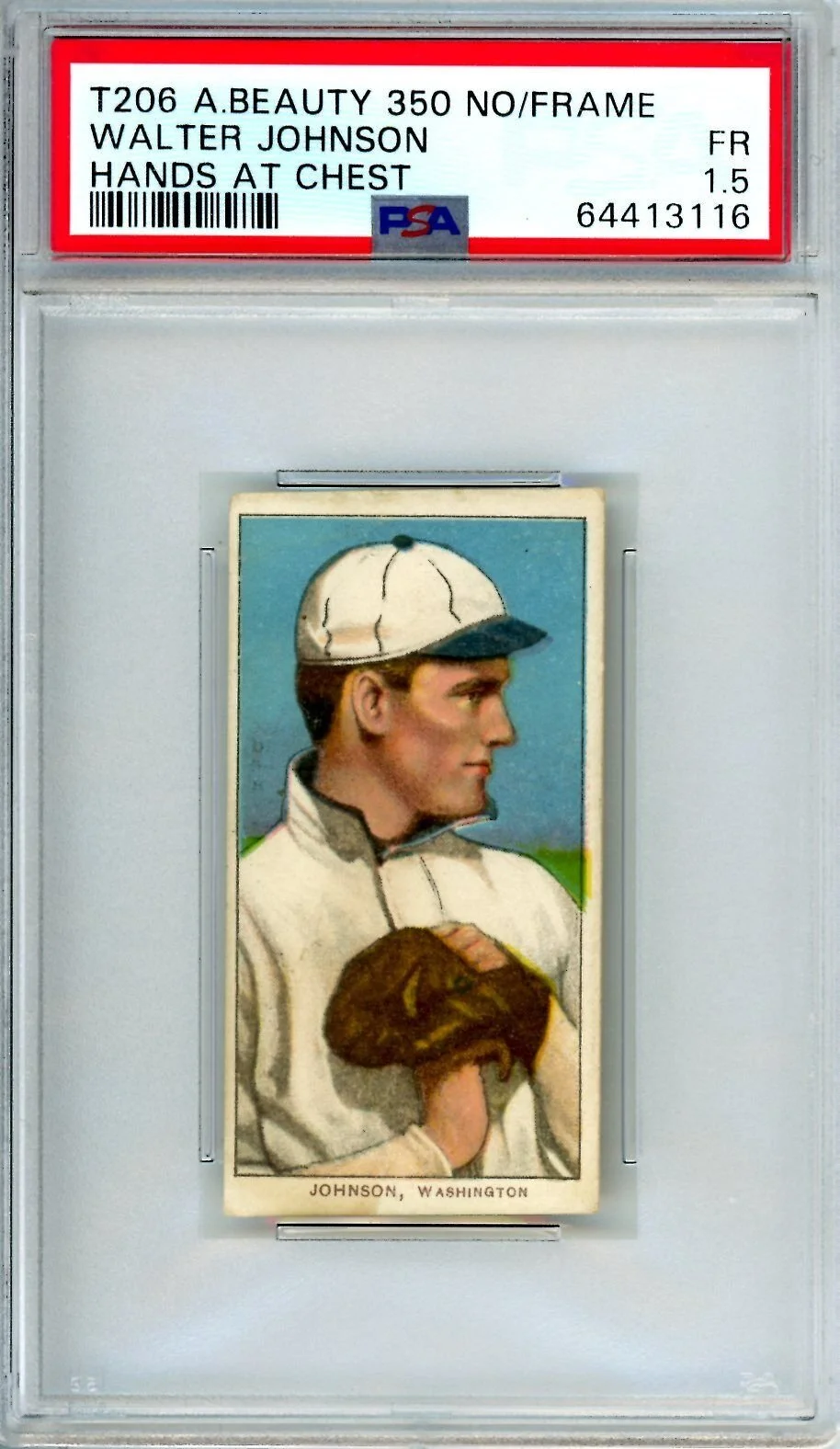 Shop › T206 American Beauty 350 No Frame Walter Johnson Hands At Chest PSA 1.5 10473 Image 1 of 2 Image 2 of 2 T206 American Beauty 350 No Frame Walter Johnson Hands At Chest PSA 1.5 10473 $8,246.70 Thousands of high grade PSA cards available New cards added weekly Always check KRISKEPPLERSPORTSCARDS Add To Cart Added! Thousands of high grade PSA cards available New cards added weekly Always check KRISKEPPLERSPORTSCARDS