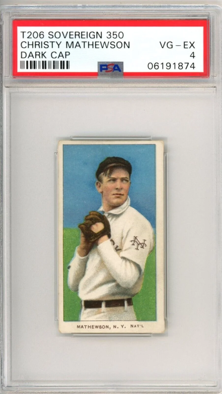 Shop › T206 Sovereign 350 Christy Mathewson PSA 4 Giants 12321 Image 1 of 2 Image 2 of 2 T206 Sovereign 350 Christy Mathewson PSA 4 Giants 12321 $3,940.00 Thousands of high grade PSA cards available New cards added weekly Always check KRISKEPPLERSPORTSCARDS Add To Cart Added! Thousands of high grade PSA cards available New cards added weekly Always check KRISKEPPLERSPORTSCARDS